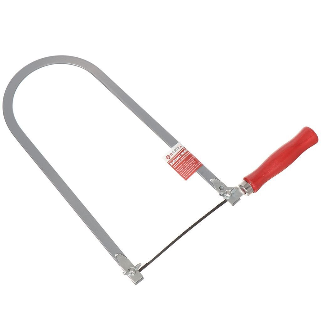 Ручной лобзик предназначен для фигурного выпиливания различных деталей из плоских деревянных заготовок. Изделие состоит из дуги, фиксирующей режущее полотно, удобной ручки с деревянной рукоятью, и стального рабочего полотна, имеющего определенную заточку.