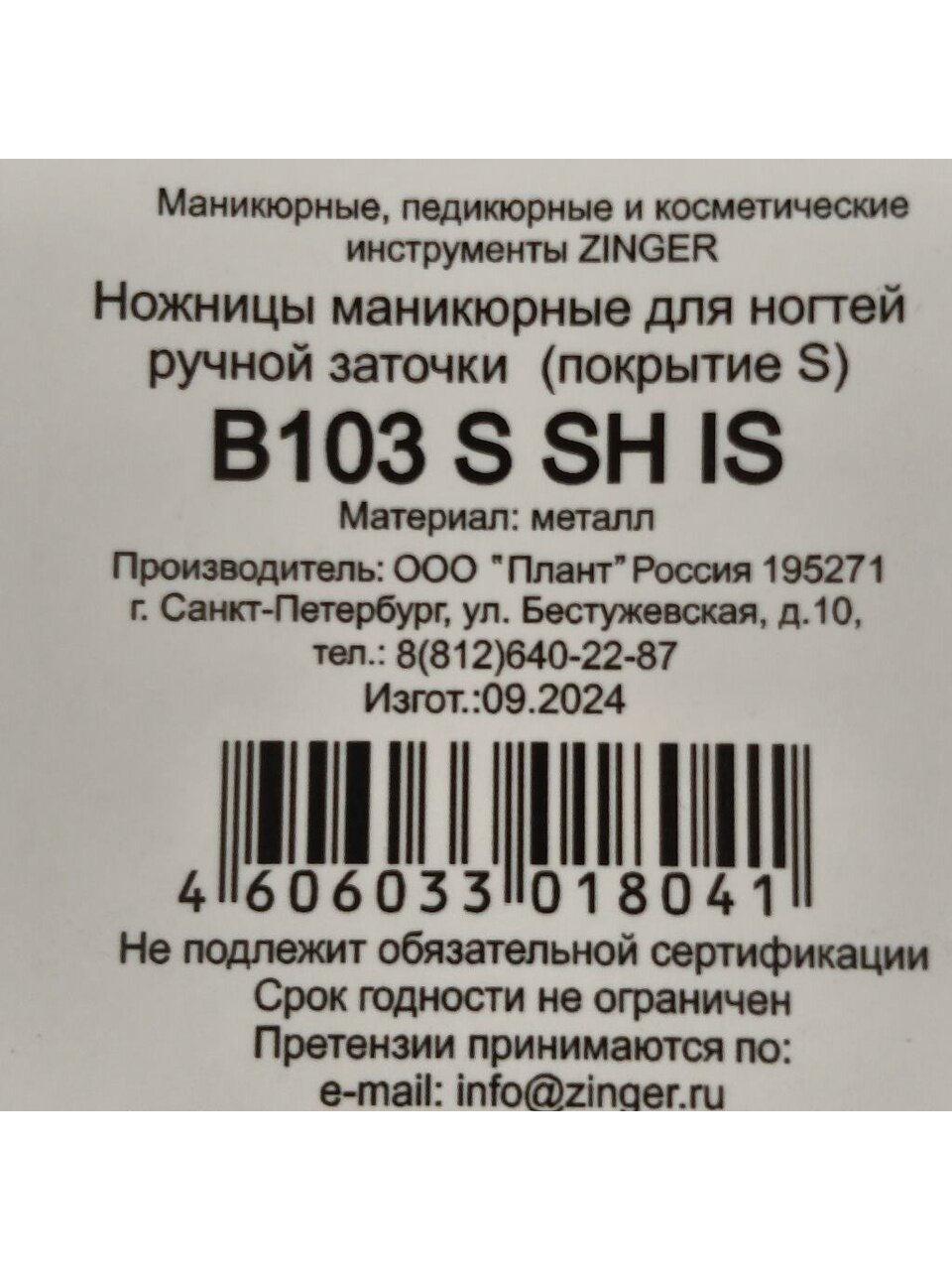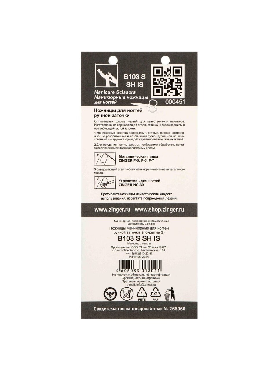 Маникюрные ножницы для ногтей zo-B-103-S-SH от бренда Zinger – идеальный выбор для создания аккуратного маникюра дома. Изготовлены из нержавеющей стали, имеют ручную заточку. Благодаря эргономичному дизайну обеспечивается легкость и точность в работе. Размер 9 см оптимален для удобства использования. Выгода: долговечность, комфорт и профессиональный результат без лишних усилий.