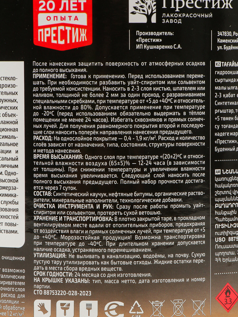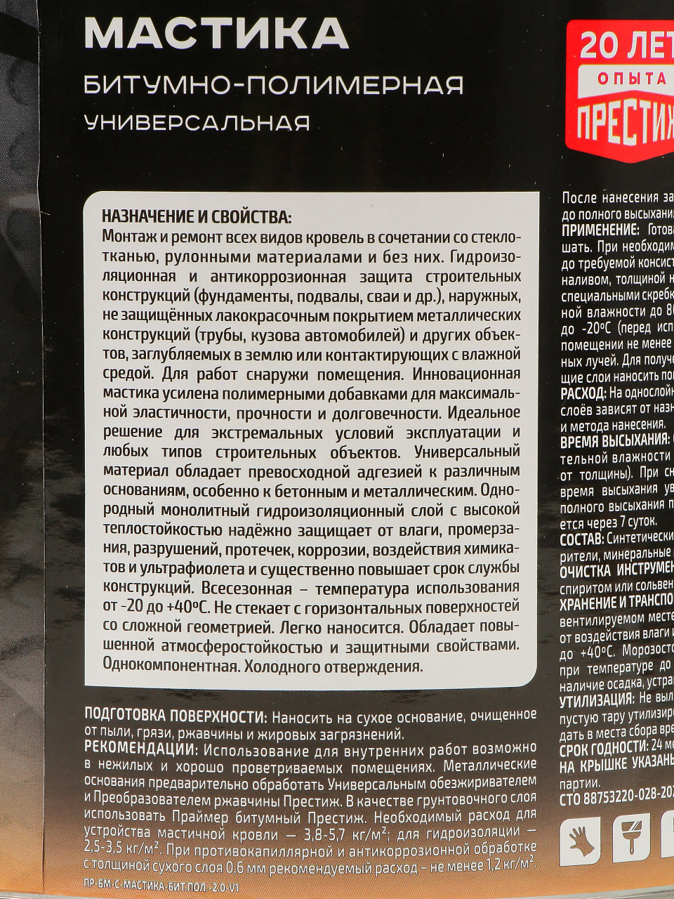 Выберите мастику Престиж — получите надежную защиту и долговечность по выгодной цене. Закажите сейчас и убедитесь в эффективности профессионального продукта!