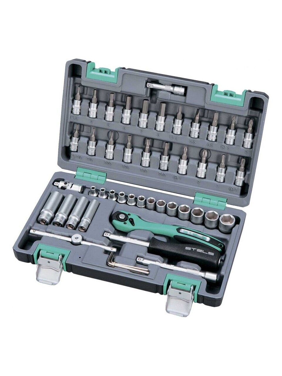 Наборы инструмента торговой марки STELS разработаны специально для автолюбителей и центров технического обслуживания. Каждый этап производства контролируется в соответствии с международными стандартами. Набор укомплектован масло и бензостойкой двухкомпонентной трещеткой. Головки и комбинированные ключи изготовлены из хромованадиевой стали, придающей инструменту исключительную твердость в сочетании с легкостью. Биты, биты-вставки и отвёртки производятся из стали S2, улучшающей свойства инструмента. Все наборы упакованы в кейс, изготовленный из жесткого противоударного пластика, с металлическими застёжками. Наборы инструмента STELS пригодятся вам не только в автомобиле. С их помощью можно проводить бытовой ремонт дома и на даче, ремонт бытовых конструкций и садовой техники.