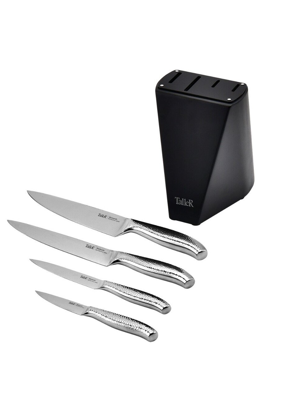 Премиальный набор ножей Taller Блэксмит 22087 из 4 предметов — идеальное решение для современной кухни, где ценится качество, стиль и удобство. Его выбирают те, кто стремится к совершенству в каждой детали: от изысканного дизайна до высоких эксплуатационных характеристик. Классическое сочетание нержавеющей стали и натурального дерева подчеркивает статус и вкус владельца, а универсальная комплектация отвечает всем кулинарным задачам. Серебристый цвет ножей гармонично впишется в любой интерьер, а подарочная упаковка делает комплект отличным выбором для презента.