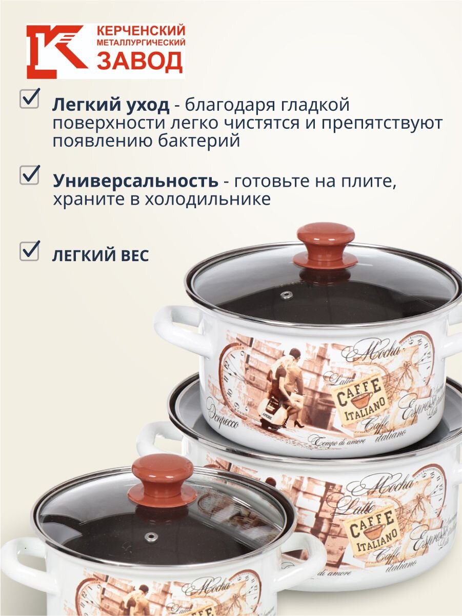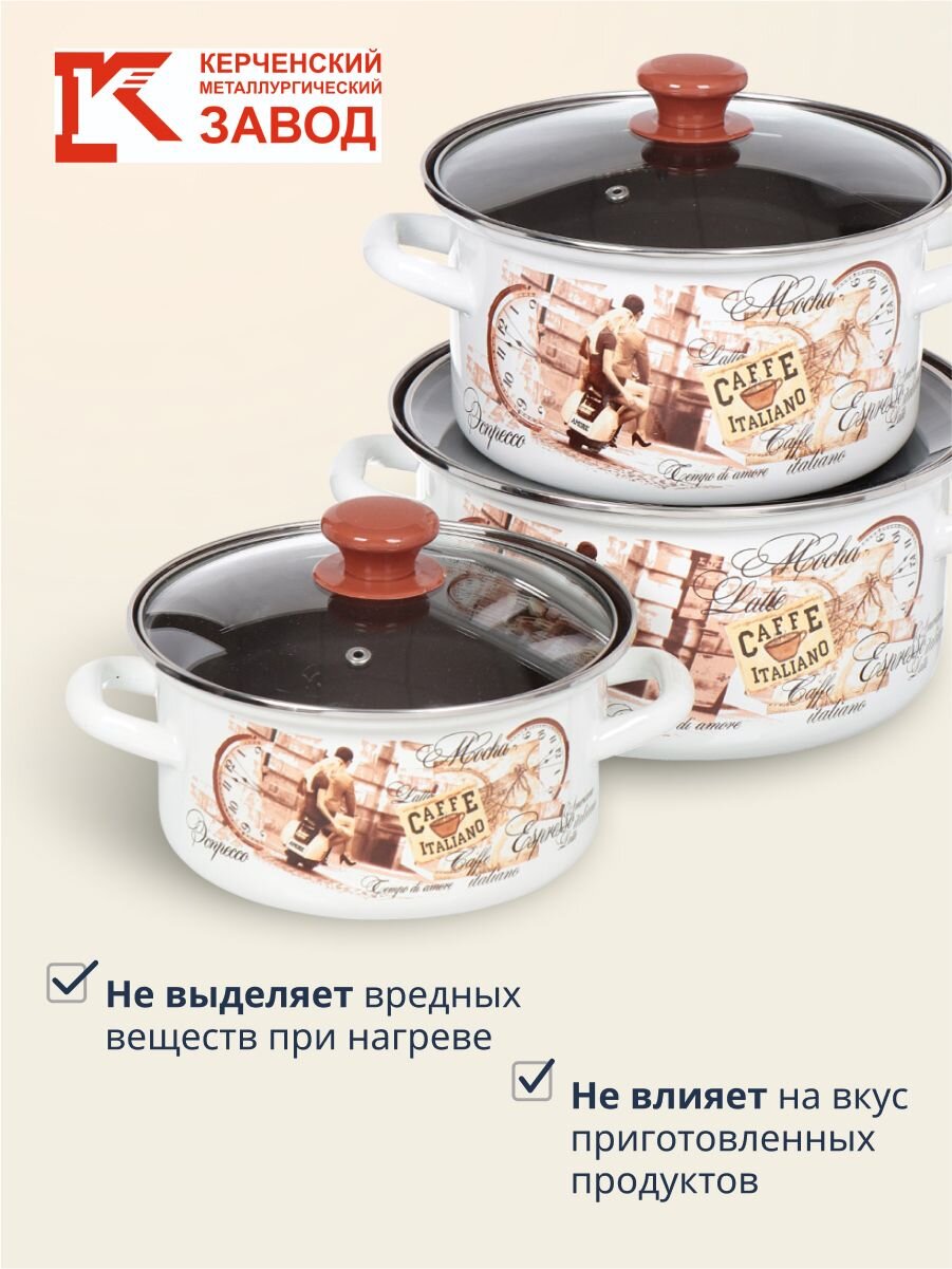 Набор эмалированной посуды 6 предметов: универсальные кастрюли Керченский металлургический завод «Эспрессо-1-Экстра» для дома и дачи — надежно, безопасно, выгодно