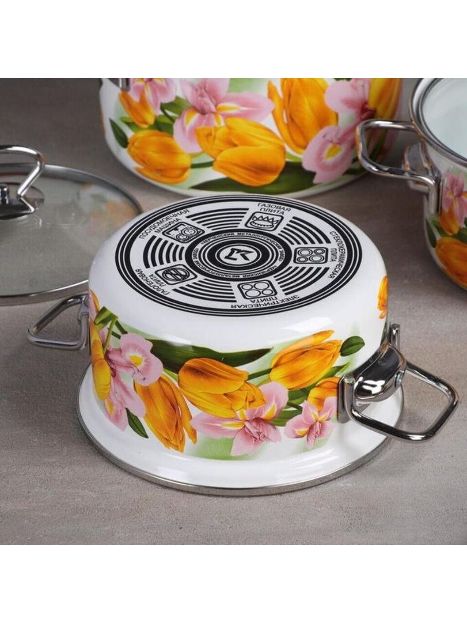 Набор эмалированных кастрюль 6 предметов Ирина-1-Н-Элит: идеальный выбор для дома и дачи, подходит для индукции, прочная сталь, выгодная цена.