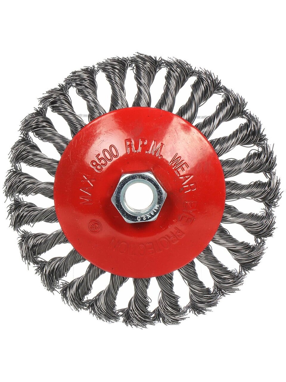 Щетка для УШМ Bartex используется для шлифовки металлических или деревянных поверхностей и деталей, очистки от ржавчины, загрязнений и лакокрасочных покрытий, получения заданной шероховатости. Насадка оснащена гайкой М14 для надежной фиксации.