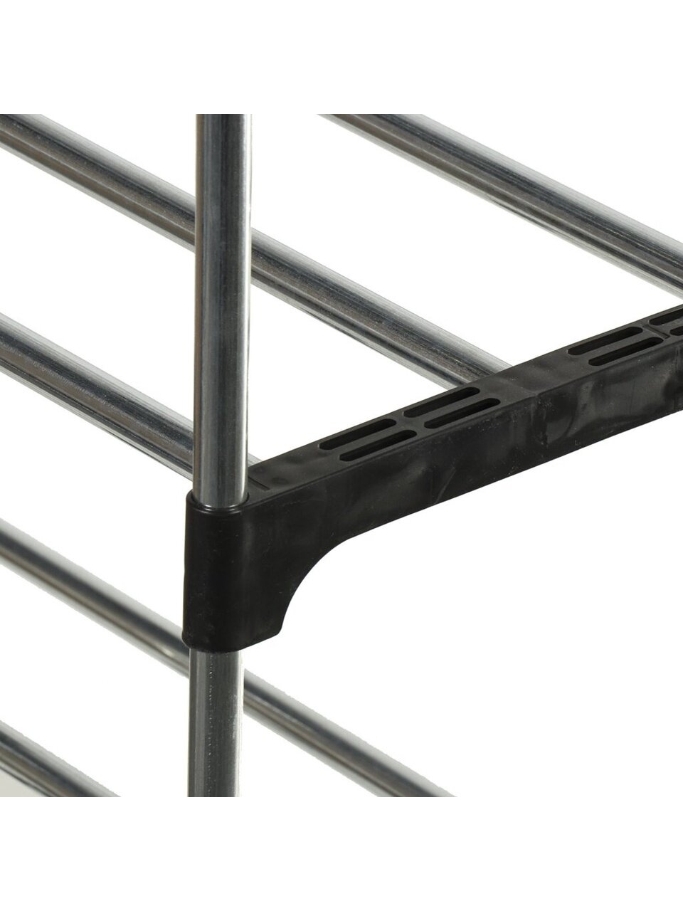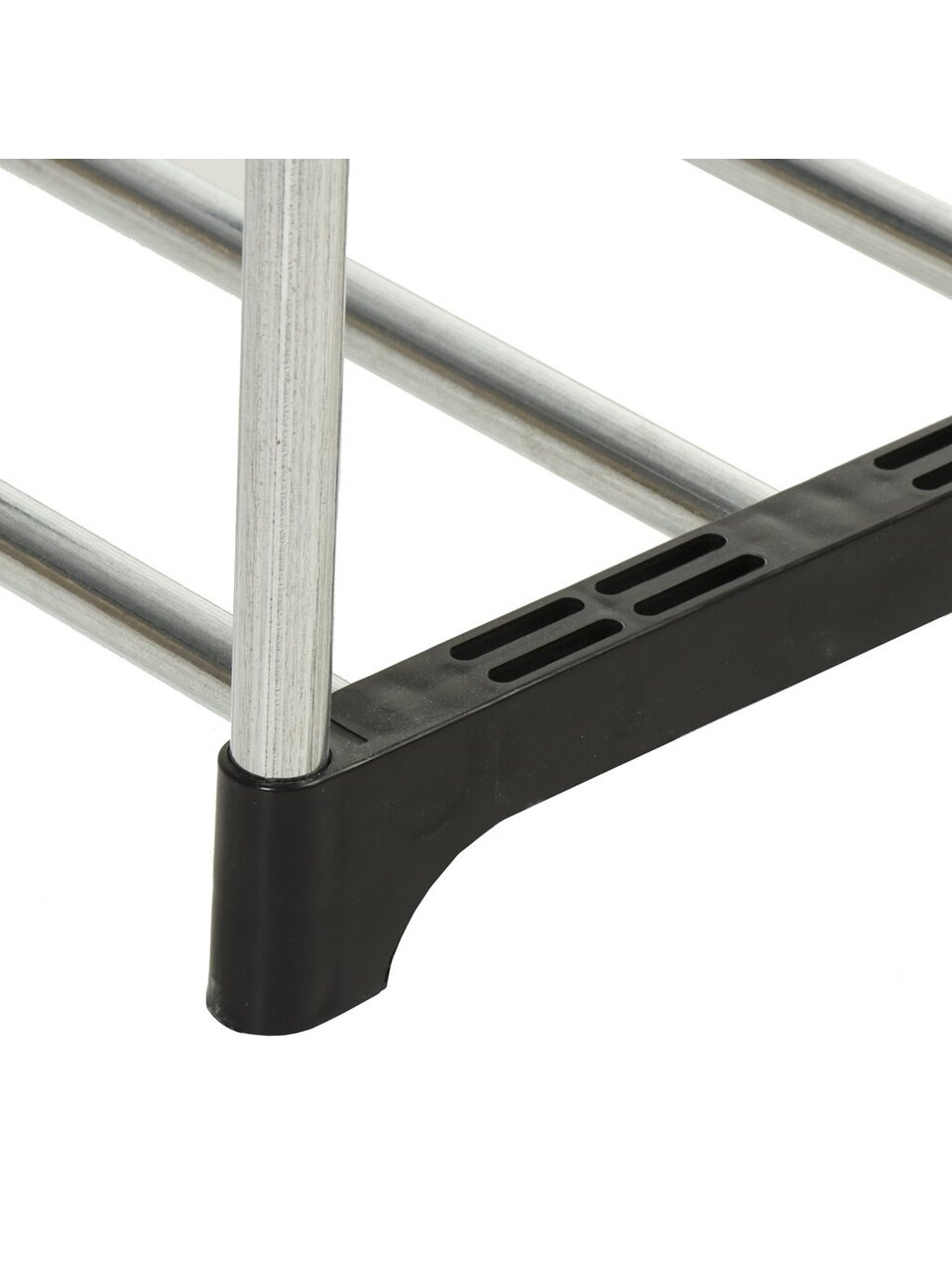 Эта полка для обуви обладает разборной конструкцией, что упрощает её сборку и транспортировку. Сделанная из металла, она отличается долговечностью и устойчивостью к износу, что гарантирует долгий срок службы. Полка не требует крепления, что позволяет легко перемещать её при необходимости.