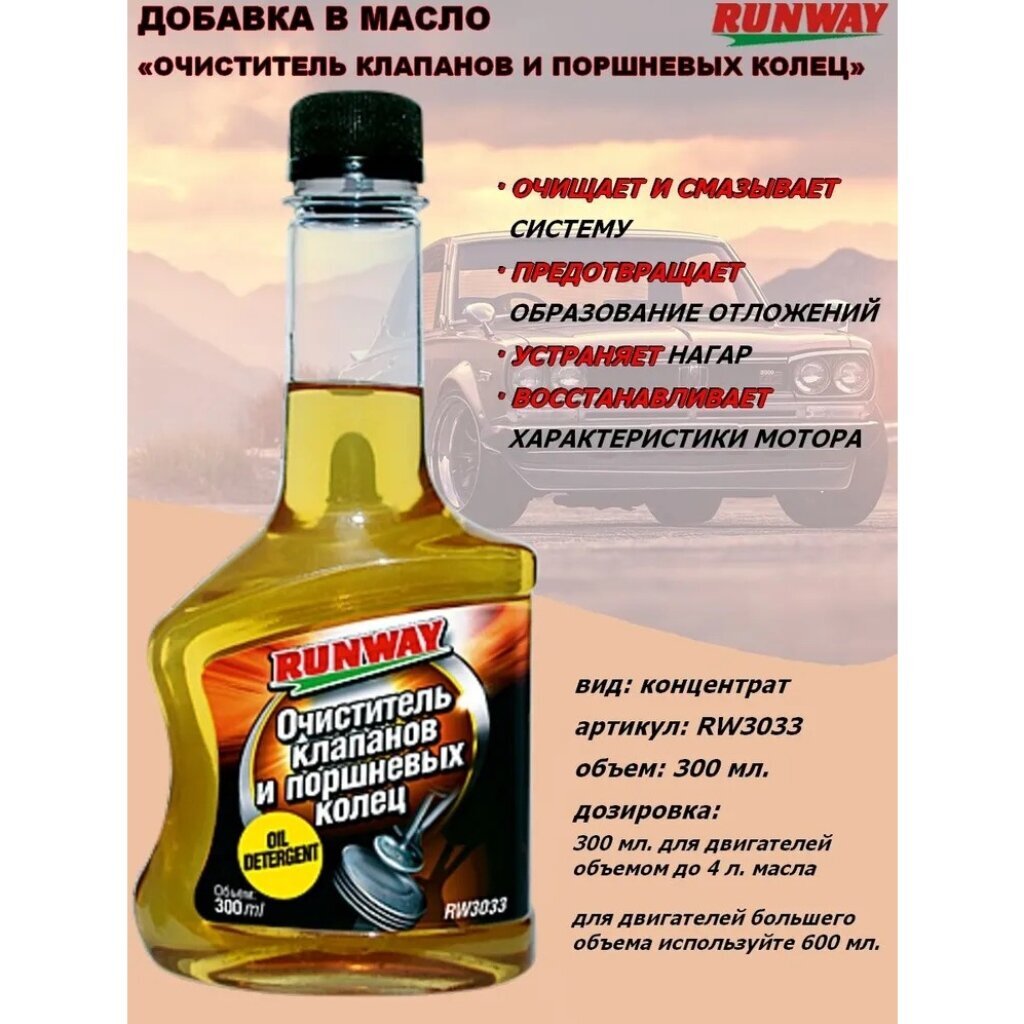 Очиститель для клапанов и поршневых колец Runway RW3033 эффективно растворяет углеродистые отложения и нагар, очищает загрязненные клапана и поршневые кольца, восстанавливает их подвижность и прилегание, способствуя снижению шумности и увеличению мощности. Предохраняет от износа распределительный вал и толкатели клапанов.