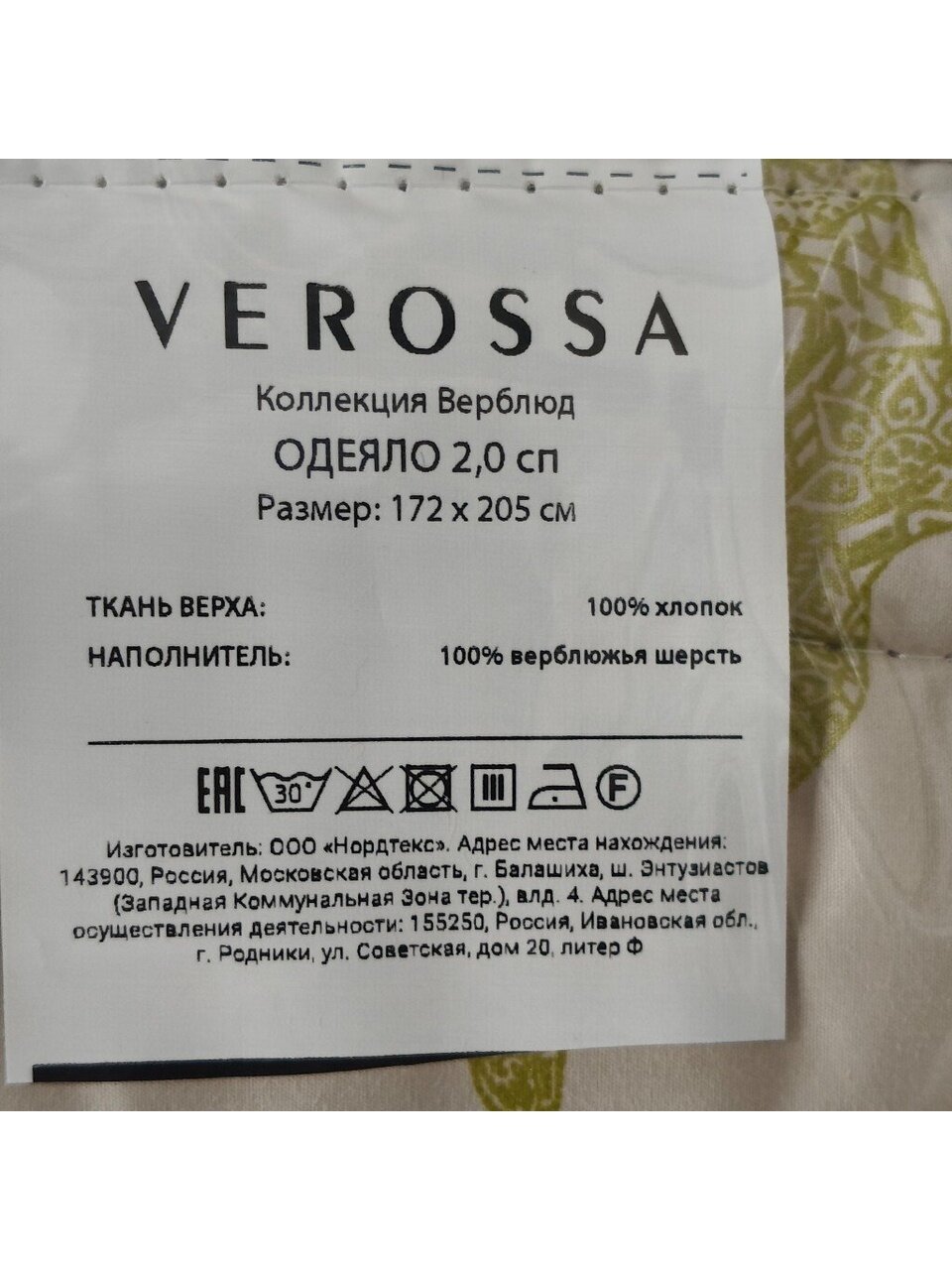 Одеяло 2-спальное Verossa 172х205 см из верблюжьей шерсти — натуральное тепло и комфорт круглый год. Подходит для аллергиков, стильный выбор для дома или дачи.