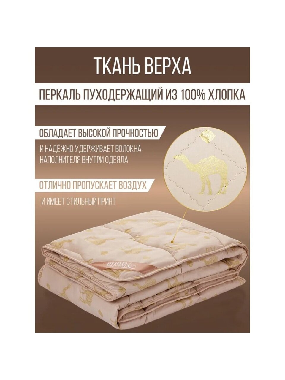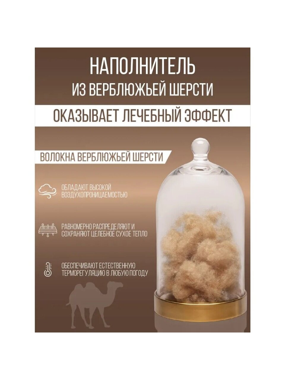 - Натуральная верблюжья шерсть — сохраняет тепло, обеспечивает оптимальный микроклимат без перегрева.