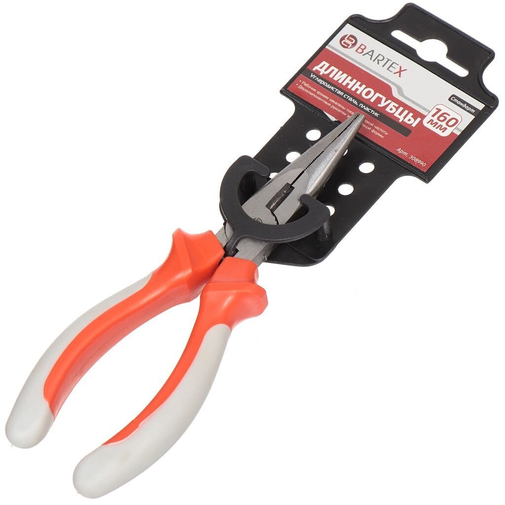 Тонкогубцы – это разновидность пассатиж с длинными и зауженными губками. Инструмент предназначен для выполнения более точных операций, таких как сгибание или выравнивание проволоки, работа с соединительными колечками или кримпами. Тонкогубцы Bartex Стандарт идеально подойдут для манипуляций в труднодоступных местах, где необходим захват мелких деталей.
