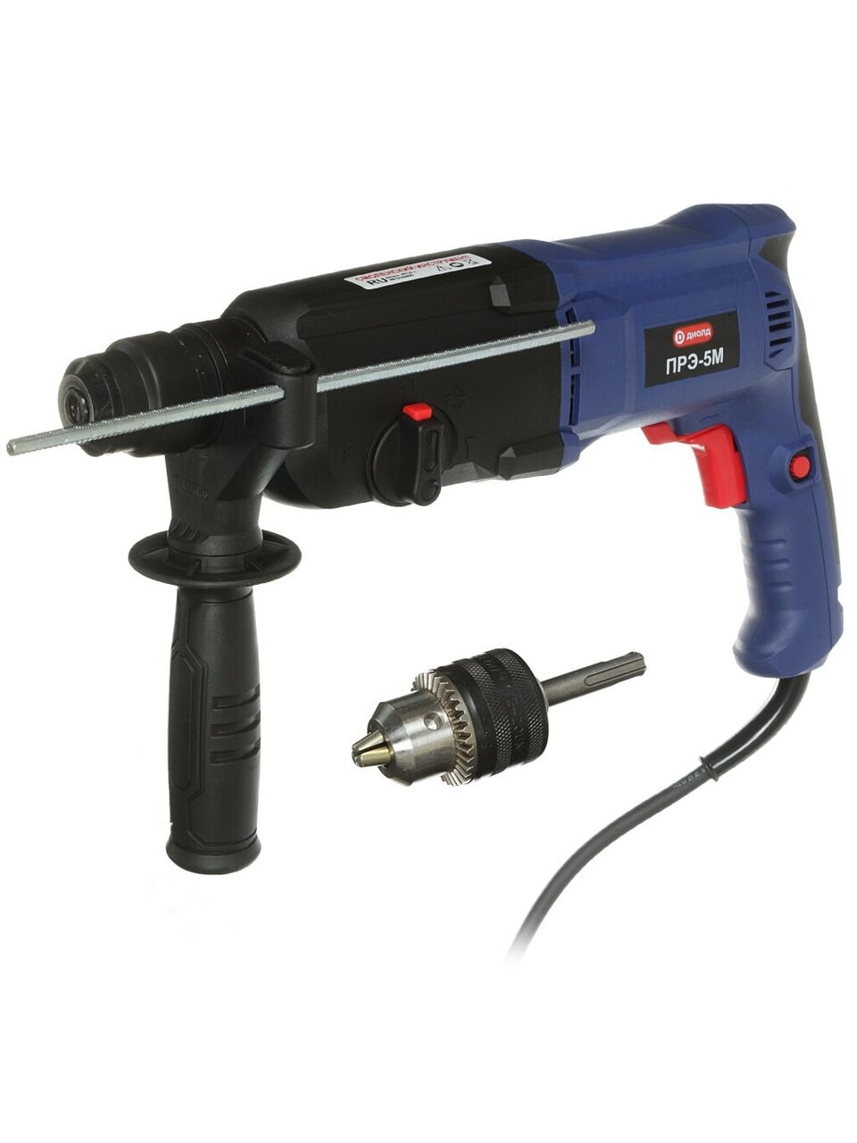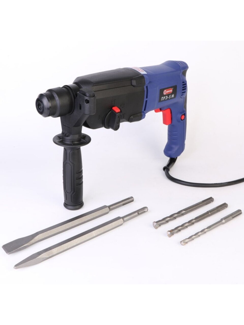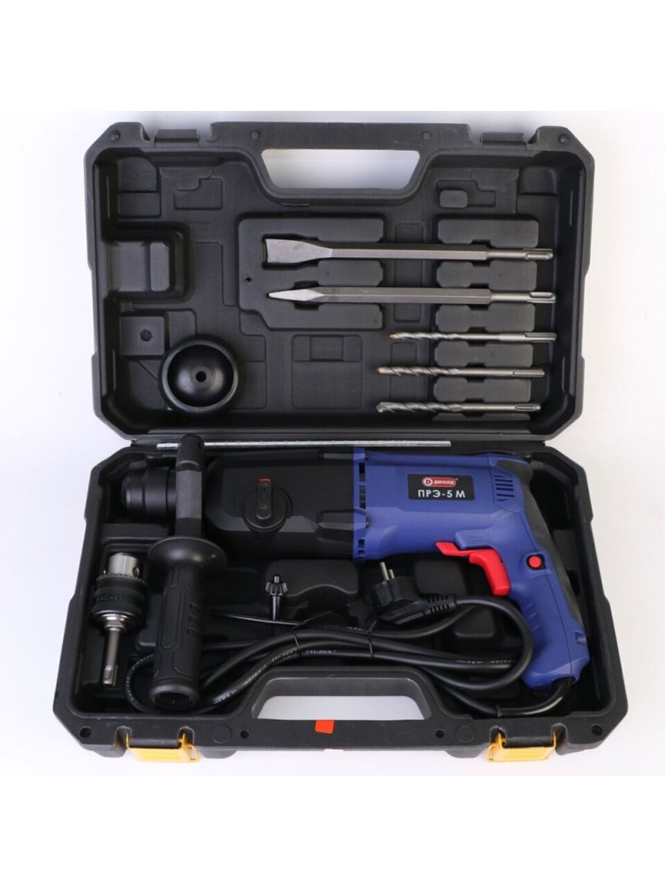 Перфоратор ПРЭ-5 М относится к изделиям бытового назначения и предназначен для работы в ударно-вращательном, вращательном и ударном режимах. Ударно-вращательный режим предназначен для образования отверстий в бетоне, кирпиче и других строительных материалах. Вращательный режим предназначен для сверления отверстий в металле, пластмассе и дереве. Ударный режим предназначен для образования пазов в кирпиче, древесине и для рубки металлов.
