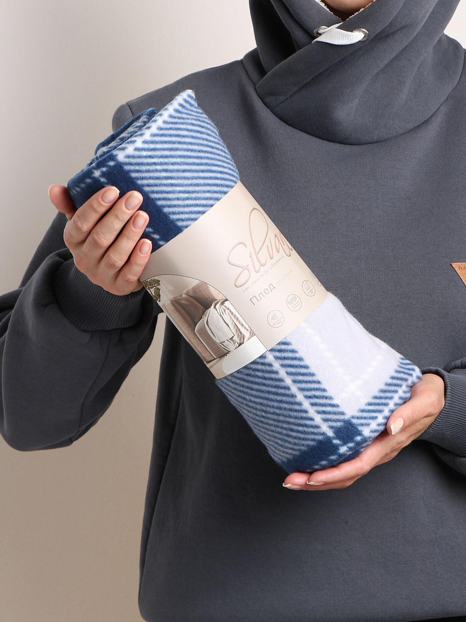 - Мягкий флисовый плед Silvano — идеальный баланс уюта и долговечности, стильная синяя клетка впишется в любой интерьер