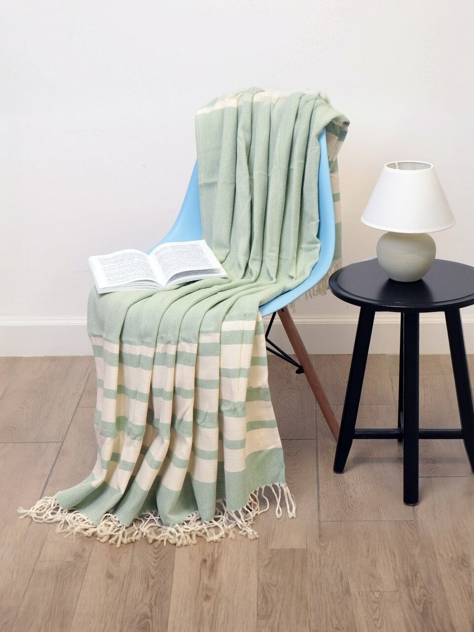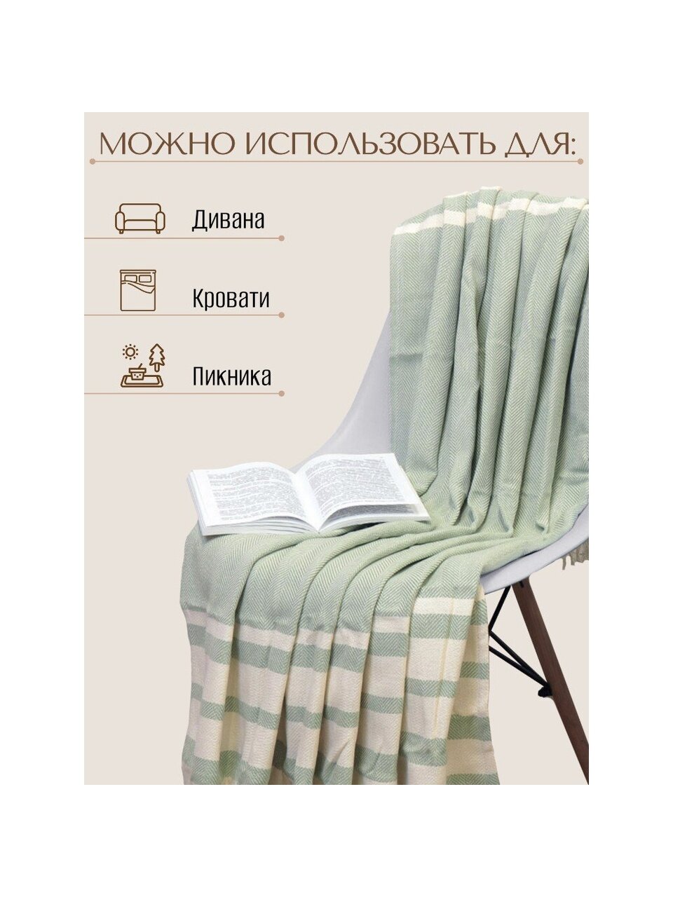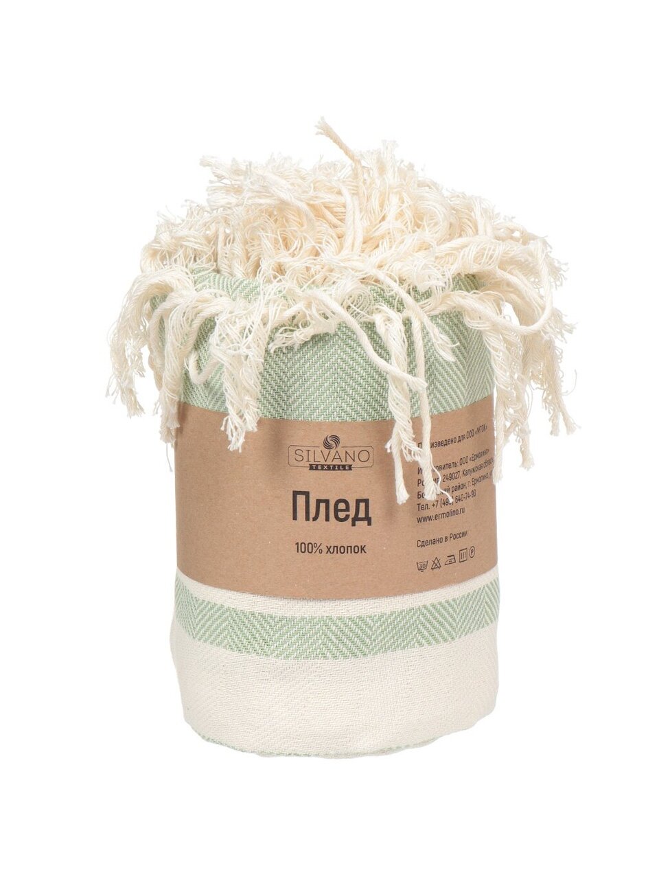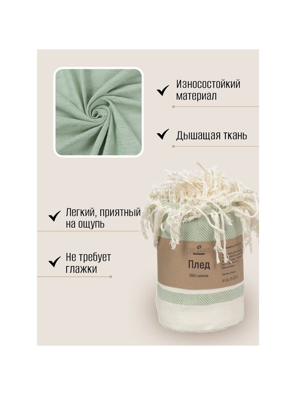 Плед 1.5-спальный Silvano 145x160 см — уютный мятный акцент для дома, дачи и авто. 100% хлопок, стильные кисти, выгодная цена — решение для комфорта и стиля.