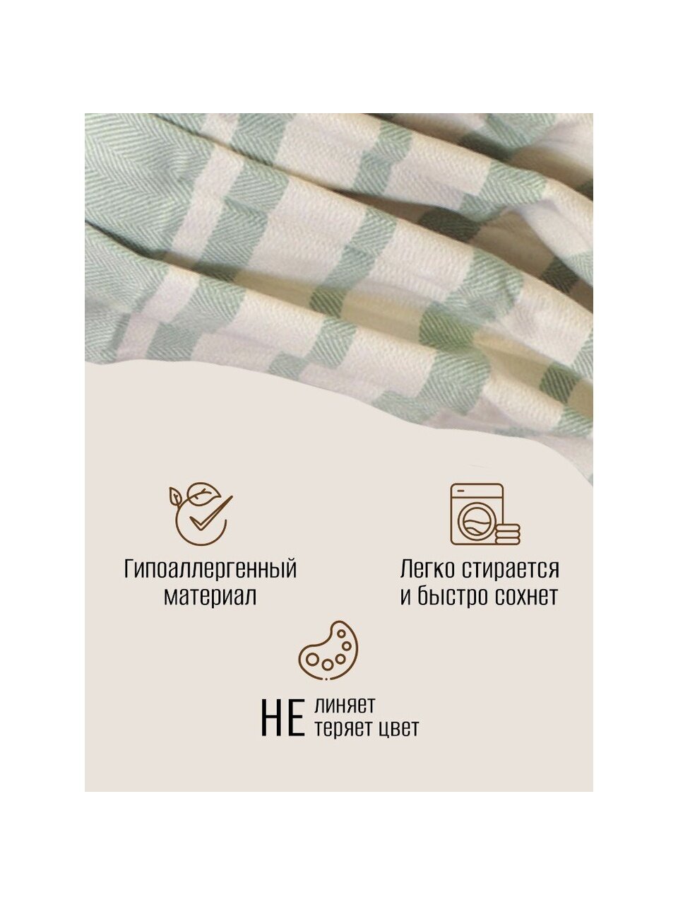 100% хлопок дышит, не вызывает аллергии, легко стирается при 30 градусах и не теряет форму. Плед легкий, компактный (0,8 кг) — удобно брать с собой на природу.