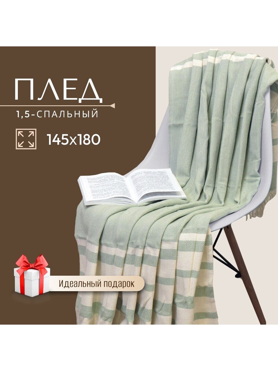 Размер пледа — 145x160 см, это оптимально для 1.5-спального использования: можно укрыться самому, застелить диван или кресло, взять с собой в машину.