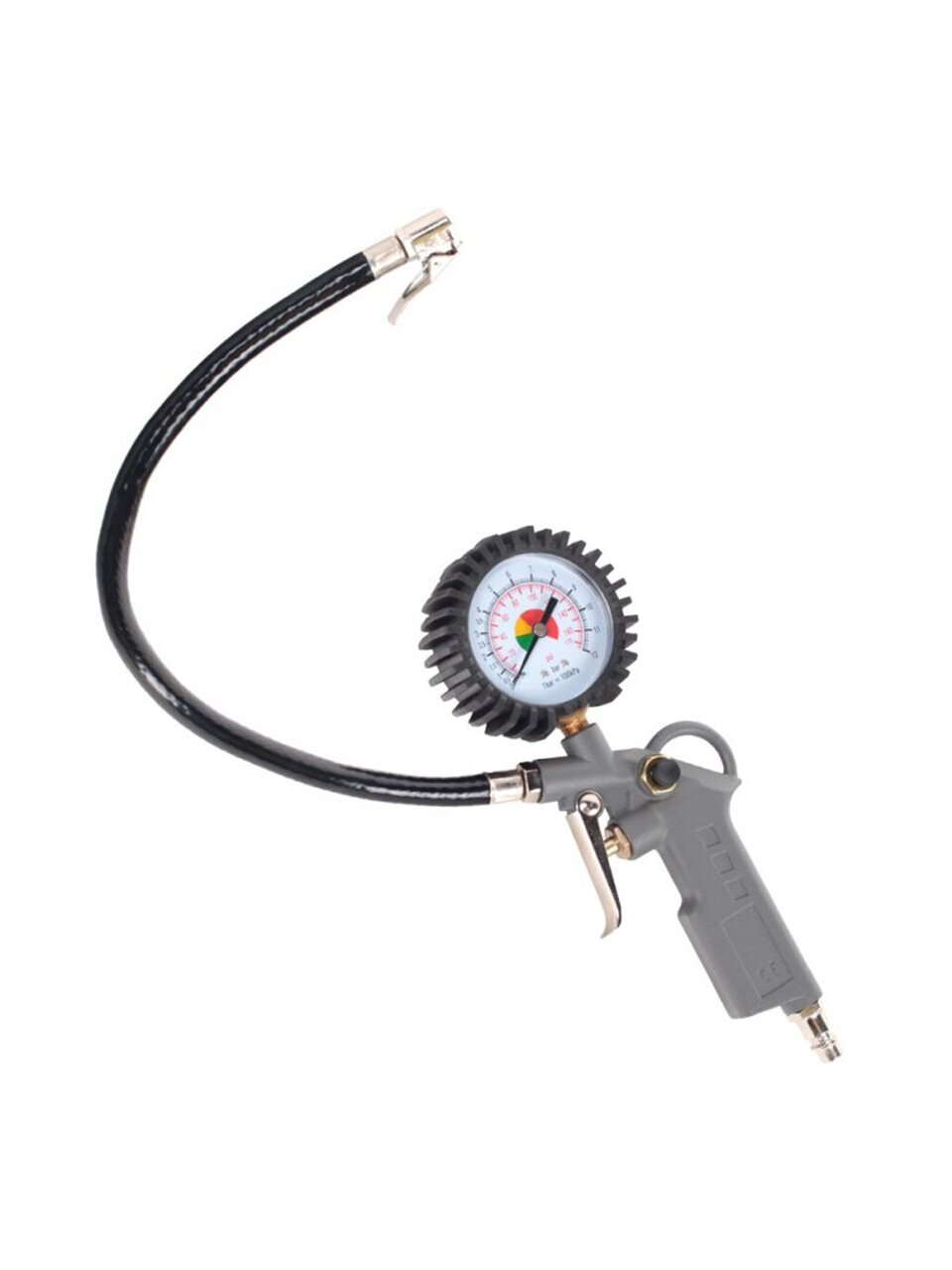 Пистолет для накачки шин с большим манометром - для точного контроля за давлением внутри автомобильных шин. Корпус, изготовленный из металла, обеспечивает надежную защиту от ударов и падений.