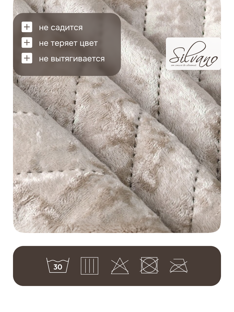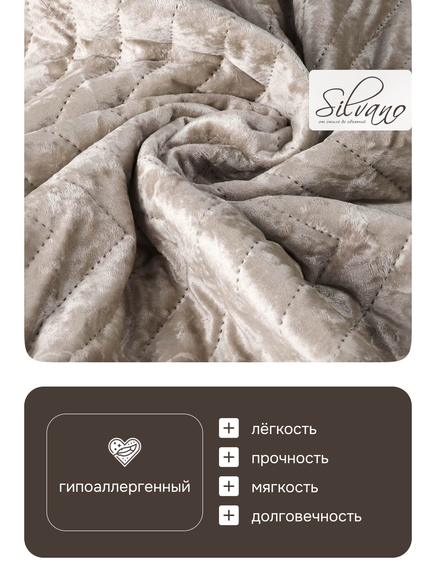 Покрывало Silvano — настоящая ода элегантности и утончённости. Оно выполнено в мягких уютных тонах, что придаёт ему особый шарм и очарование. Материал покрывала отличается непревзойдённым качеством и невероятной мягкостью.