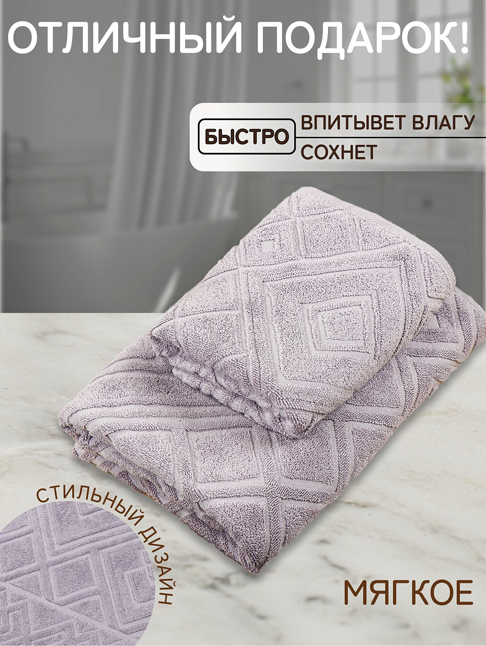 Полотенце банное 70х140 см из 100% хлопка, жаккард «Ромбы 4443», плотность 450 г/м2 — оптимальный выбор для дома, дачи и подарка. Мягкость, стиль и долговечность по доступной цене.