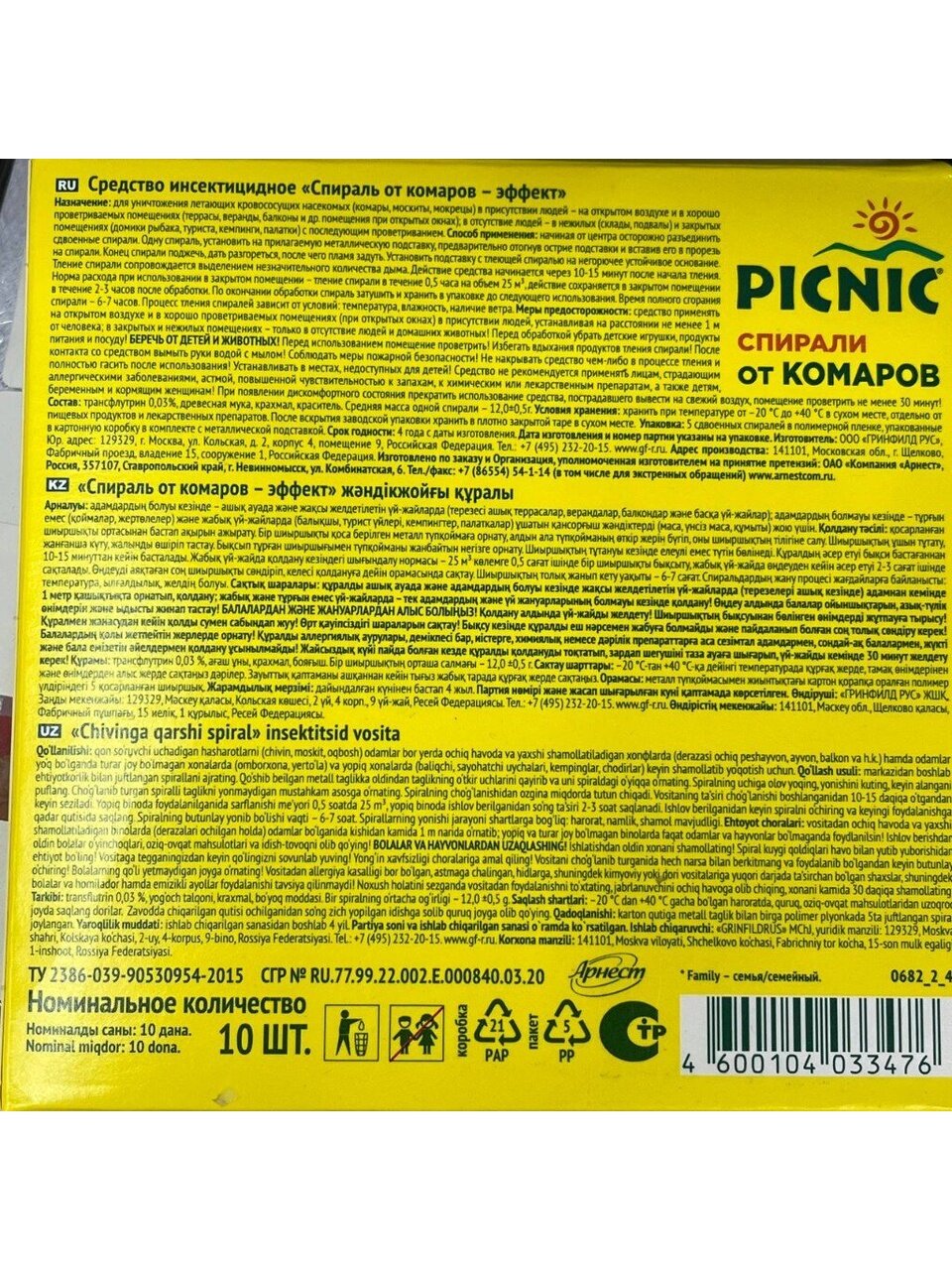 Репеллент от комаров Picnic Family — надежное средство для защиты от комаров, москитов и мошек. Спирали подходят для использования на улице и в помещении, обеспечивая длительное отпугивание и уничтожение насекомых. В упаковке 10 штук — идеальный выбор для дачи, пикника и отдыха на свежем воздухе.
