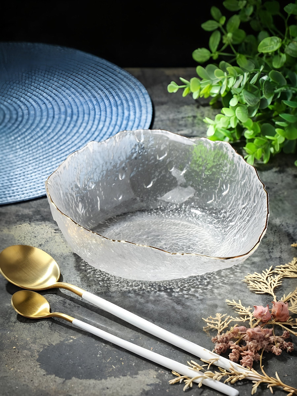- Уникальный дизайн: рельефный узор и золотая окантовка делают салатник из стекла ярким элементом любой сервировки