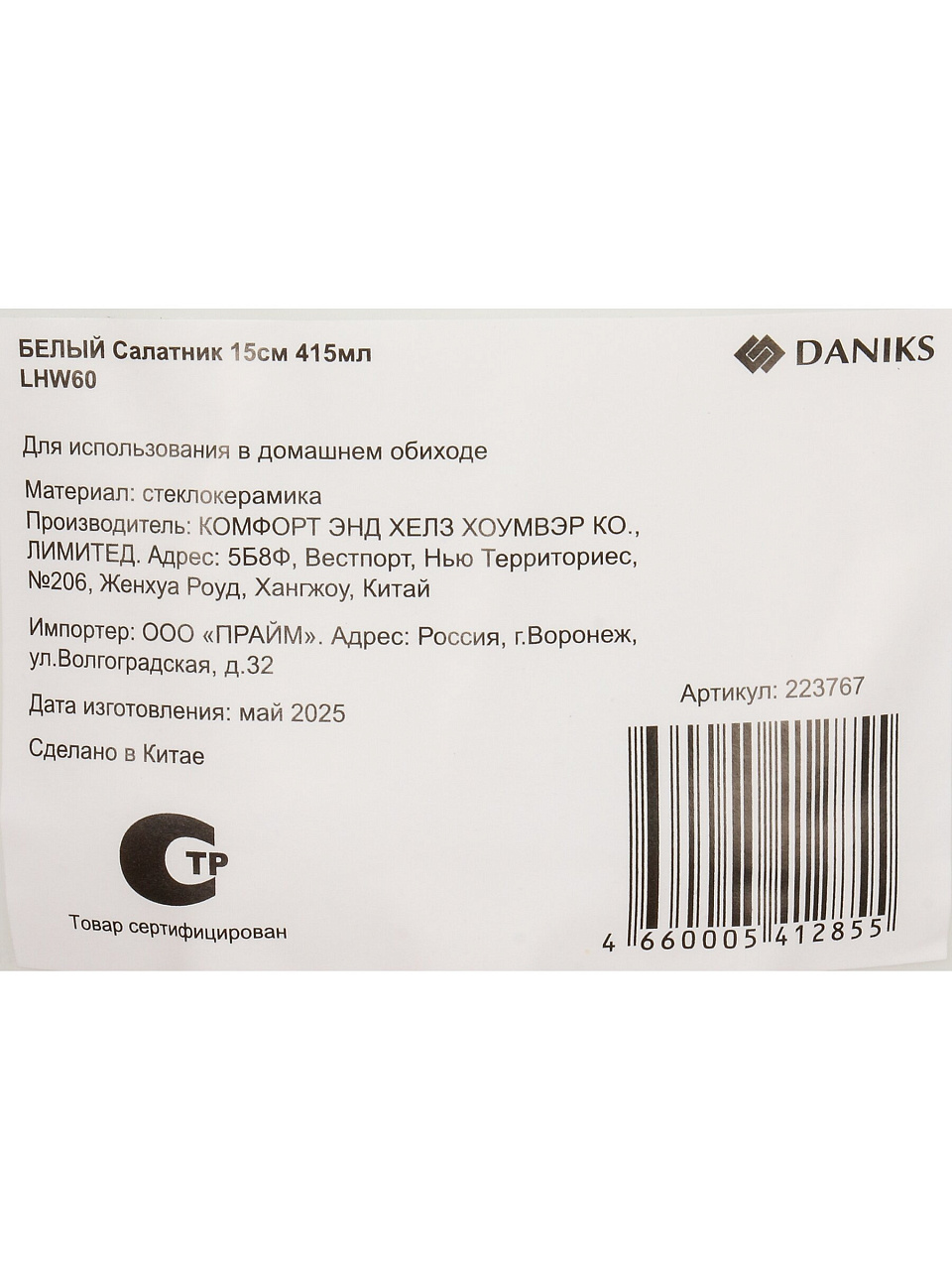 Часто спрашивают, чем отличается стеклокерамика от других материалов — этот салатник не боится частого мытья, можно ставить в микроволновку и посудомоечную машину. Белый цвет и однотонный дизайн впишутся в любой стиль кухни, а отсутствие крышки и металлической подставки делает изделие легким и мобильным. Как использовать салатник Daniks? Для порционной подачи, хранения готовых блюд, сервировки овощей или как миску для завтрака. Это недорогой вариант, который прослужит долго даже при интенсивном использовании.