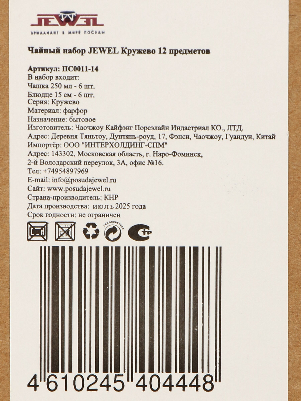 Из чего изготовлен чайный набор Jewel Кружево, можно ли использовать в посудомоечной машине?