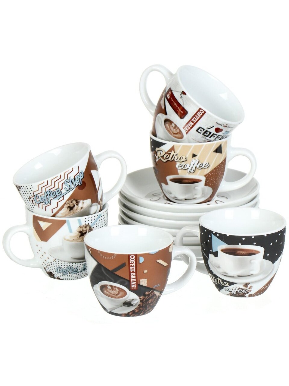 Чайный набор на 6 персон «Кофе-брейк» из фарфора: стильный подарок в коробке, 12 предметов, подходит для СВЧ и ПММ, с подставкой ― уют и порядок на вашей кухне.