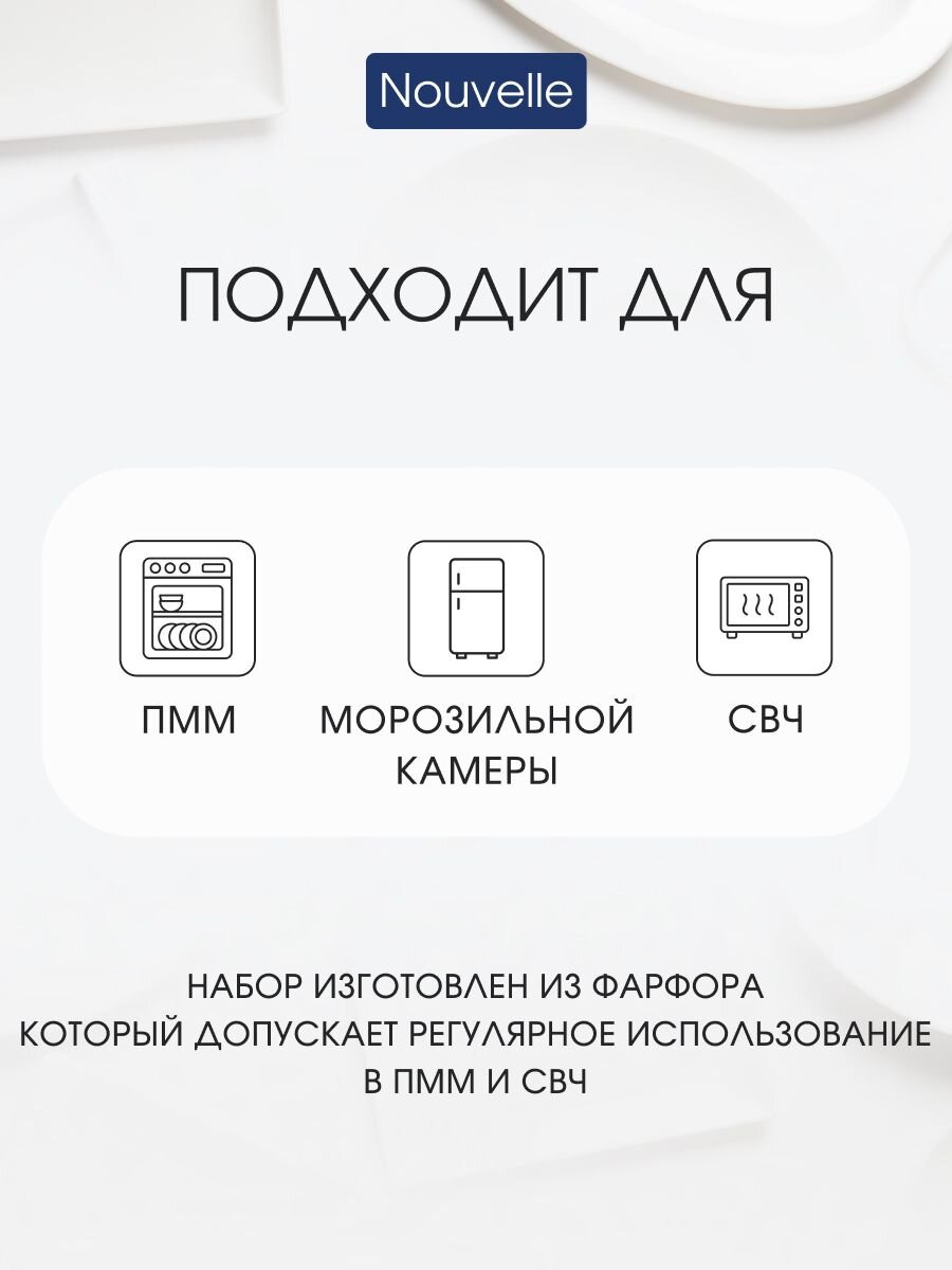 - Высокопрочный фарфор, подходящий для посудомоечной машины и СВЧ, рассчитан на долгий срок службы