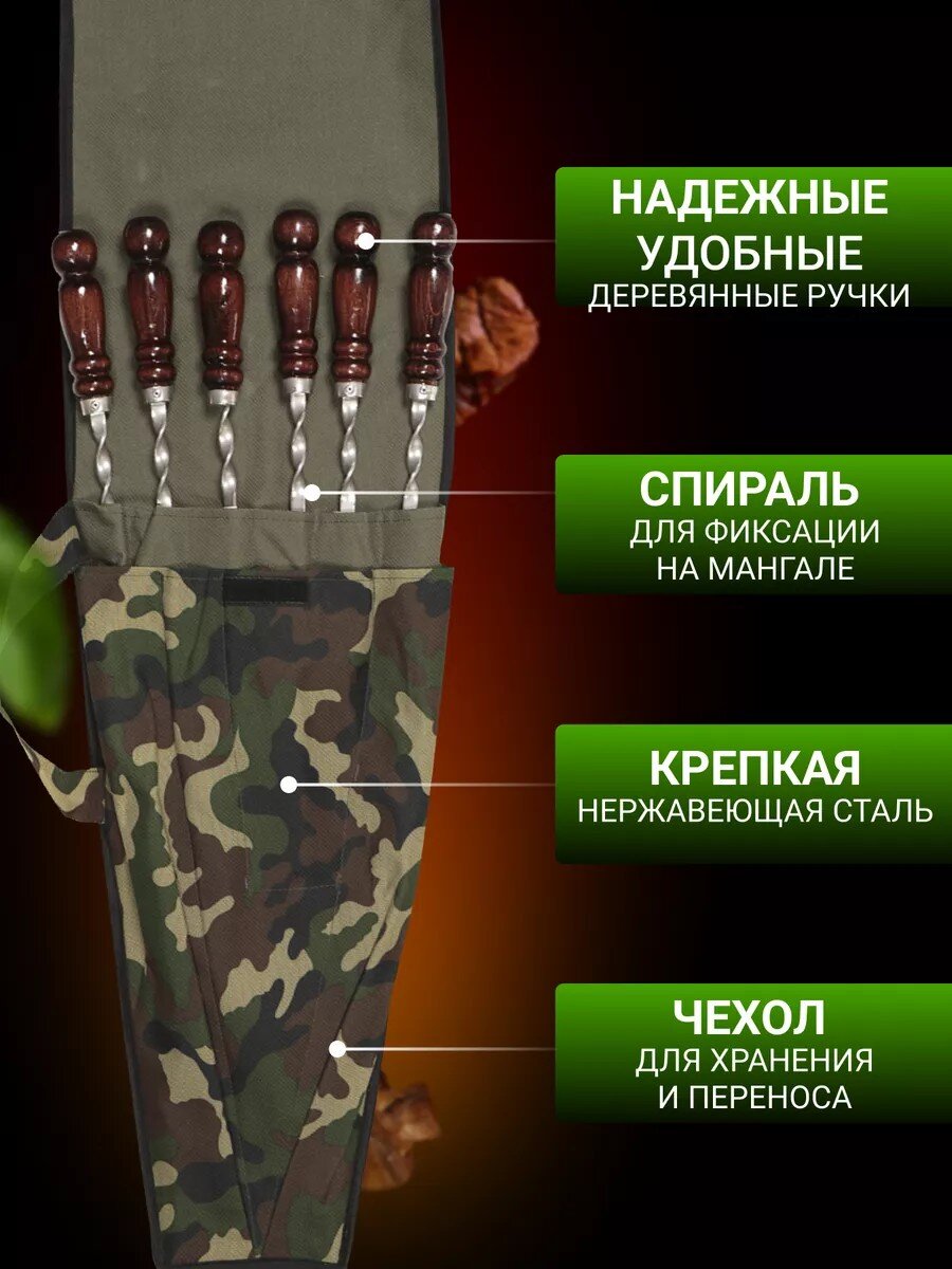 - Данный набор шампуров — идеальный вариант для тех, кто ценит отдых на природе и любит готовить вкусную еду на открытом огне. В комплекте 6 шампуров из нержавеющей стали с деревянными ручками, которые удобно лежат в руке и не скользят.