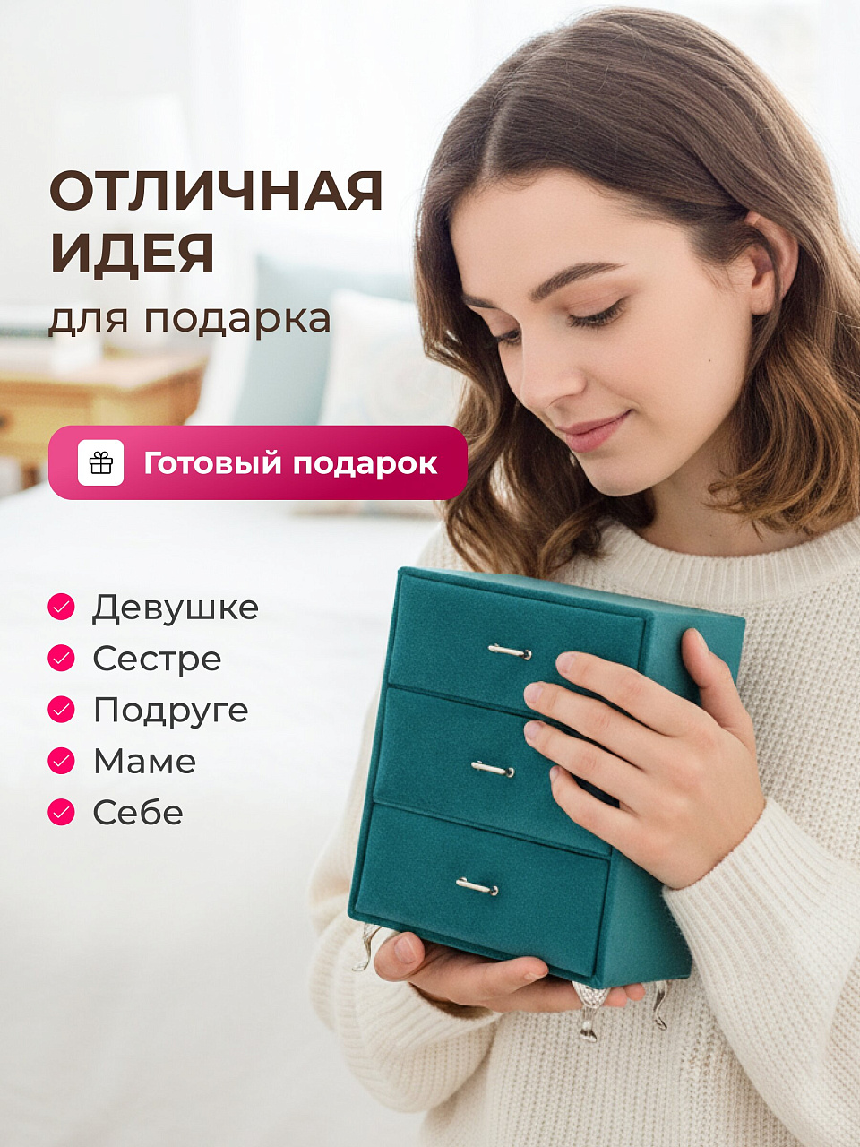 - Станет отличным органайзером благодаря отсекам внутри шкатулки.