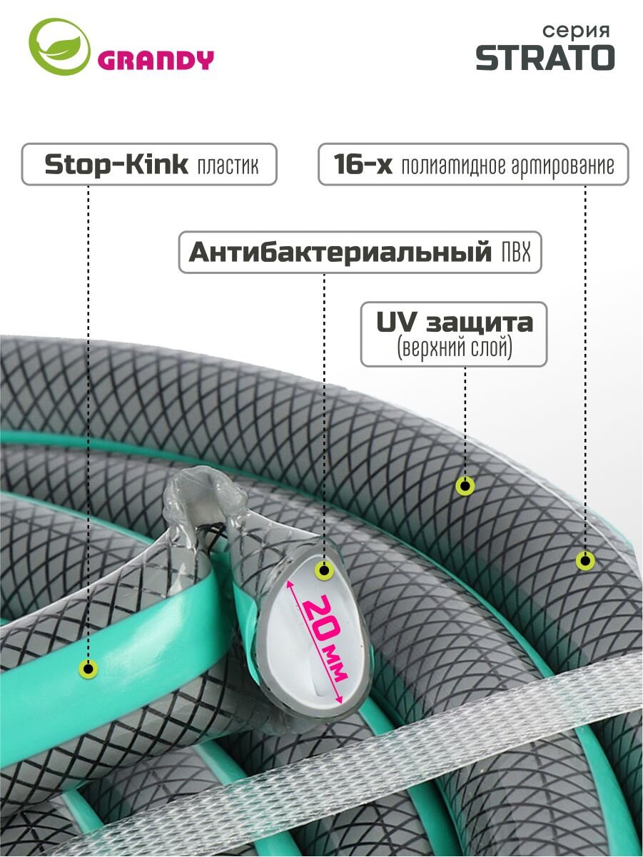 Идеальная форма шланга достигается благодаря неповторимой технологии армирования: нити располагаются под углом к горизонтали, что позволяет сохранить идеальный диаметр и длину изделия, предотвращая перекручивание и перегиб. Трехслойные стенки гарантируют долгую службу и безопасность использования на протяжении всего жизненного цикла шланга.