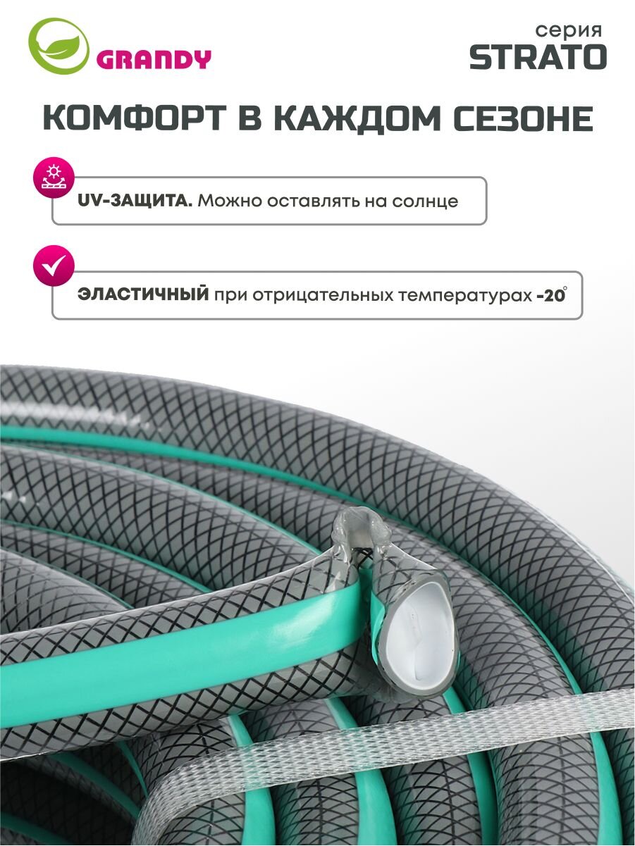 Трехслойные эластичные шланги GRINDA, изготовленные из высококачественного ПВХ и усиленные прочными полиамидными нитями, являются оптимальным решением для интенсивного полива