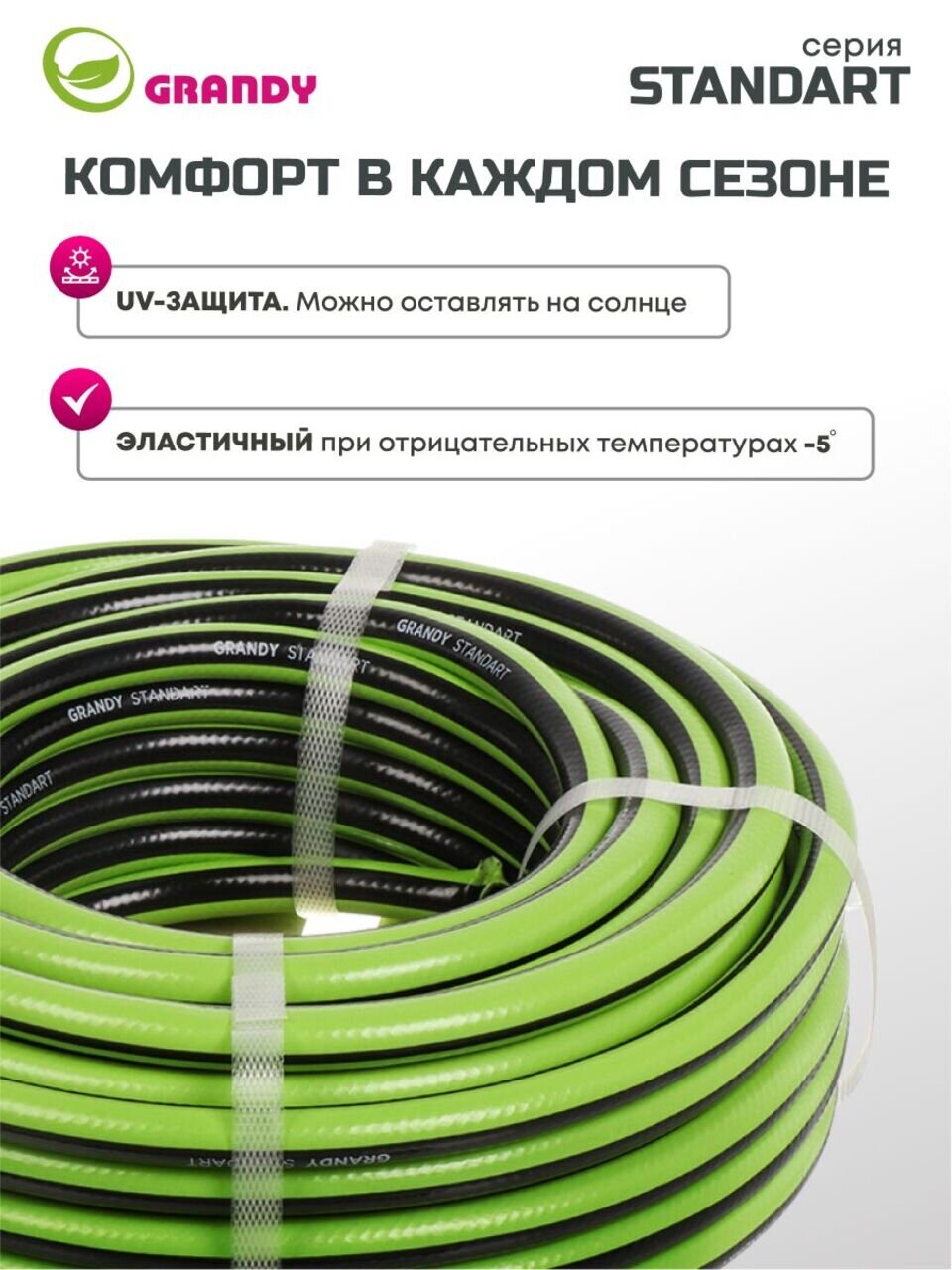 Шланг Grandy обладает всеми необходимыми характеристиками: очень прочный, гибкий и устойчивый к скручиванию, что делает его идеальным для использования в любых условиях. Материал, из которого изготовлен шланг, прекрасно справляется с воздействием солнечных лучей, благодаря чему шланг не выгорает и не портится со временем.