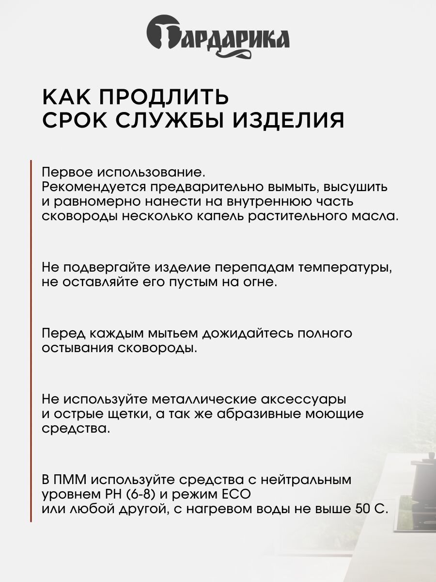 Гранитное покрытие устойчиво к царапинам, легко очищается, позволяет готовить без масла и не впитывает запахи. Это удобно для ежедневного использования и экономит время на уходе.