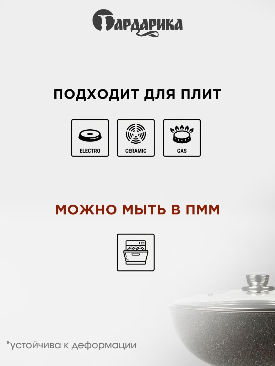 Закажите сковороду-вок Гардарика Мегалит 18 — получите универсальный инструмент для кухни с гарантией 12 месяцев и бесплатной доставкой при заказе онлайн.