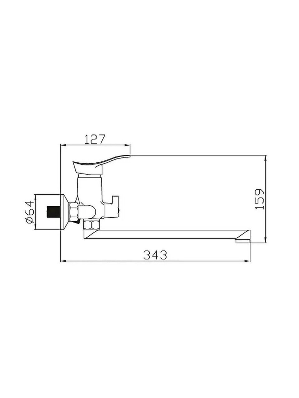 Корпус выполнен из цинкового сплава с глянцевым хромированным покрытием, длина поворотного излива — 34,3 см, что обеспечивает удобство при использовании в разных типах ванн.