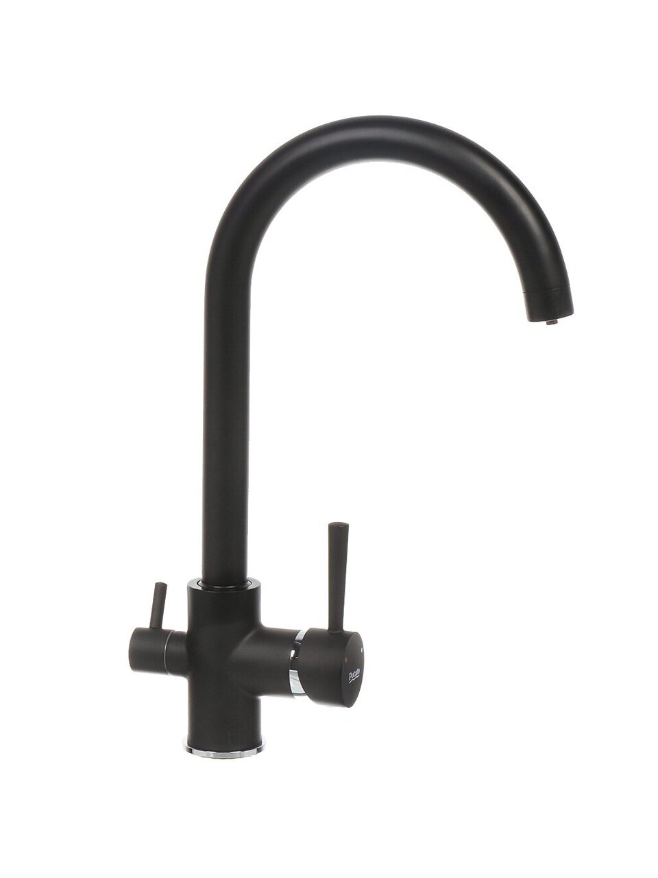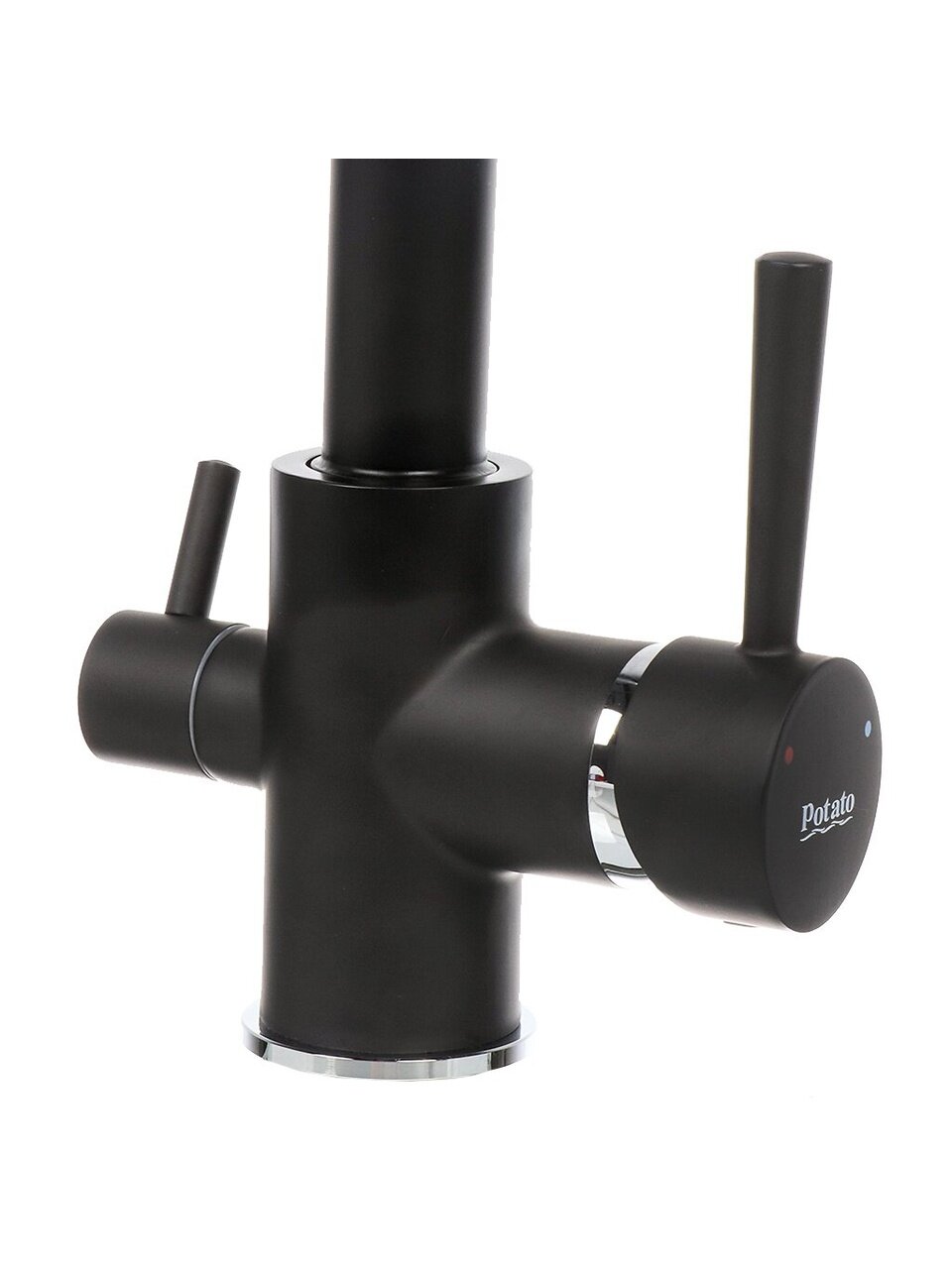Смеситель для кухни Potato P44297-6: стильный черный дизайн, подключение к фильтру, высота излива 25,8 см — идеальное решение для чистой воды и современного интерьера.