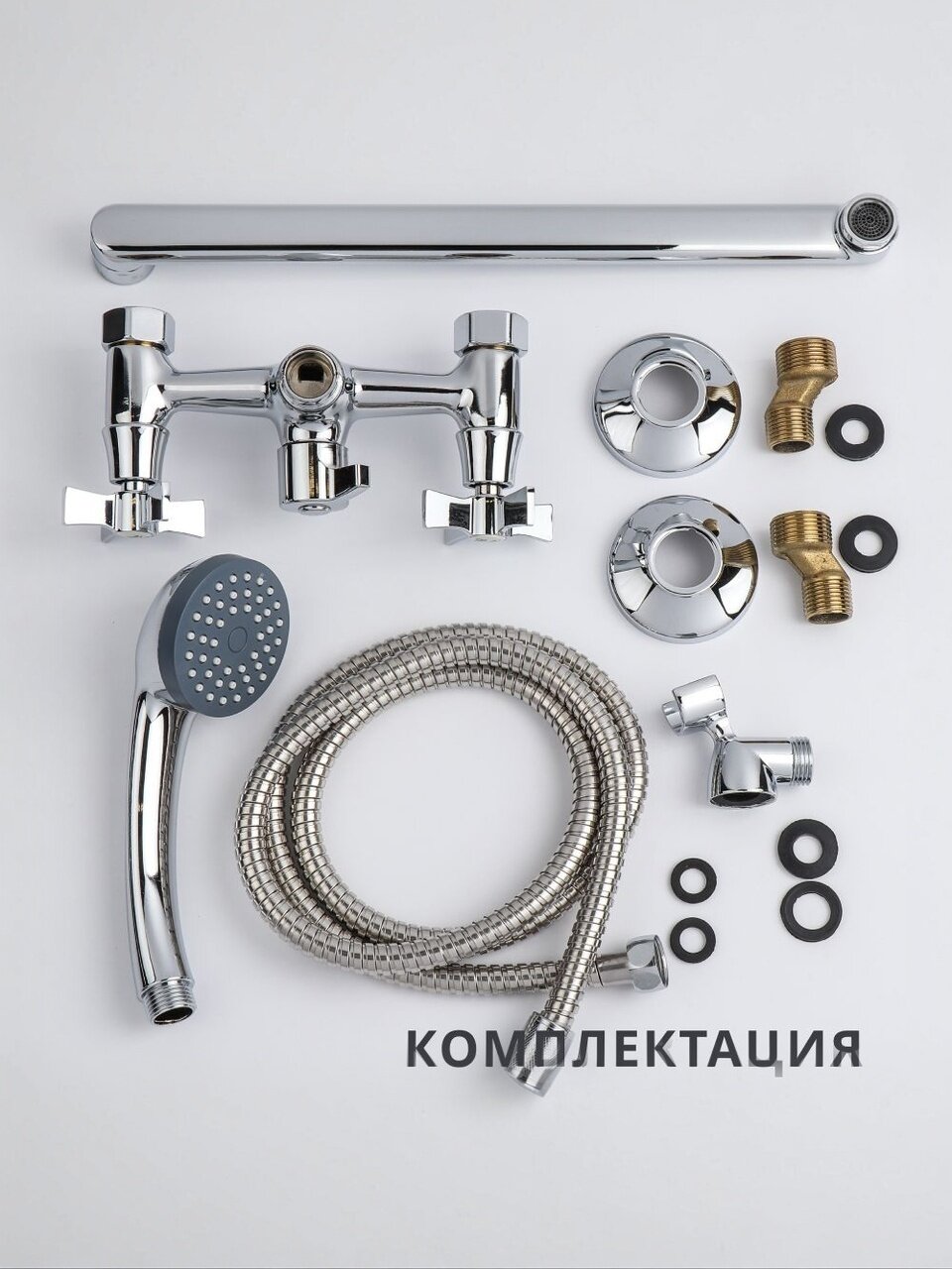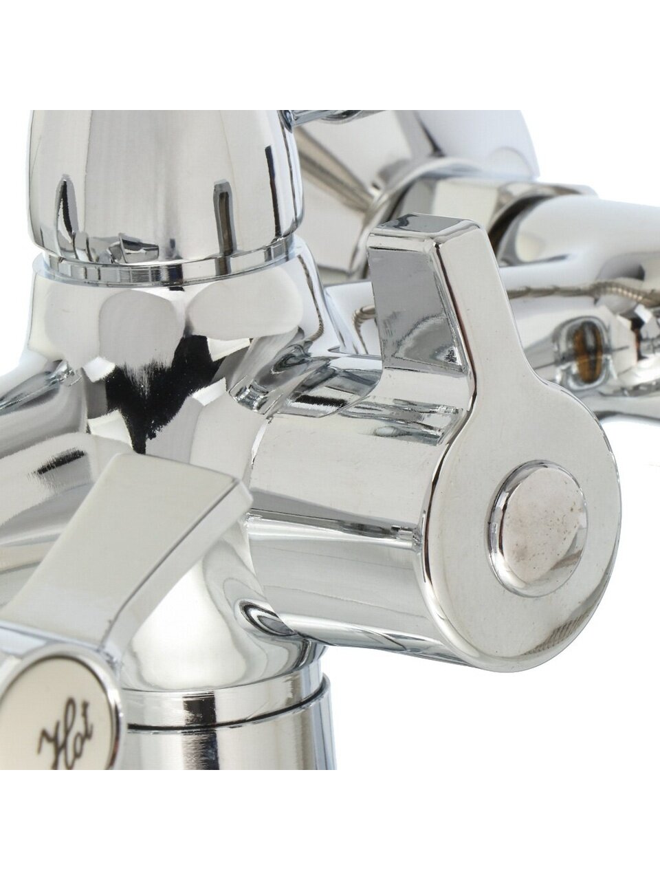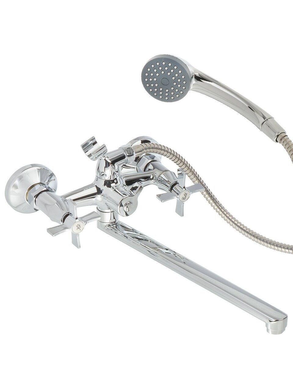 - Надёжный цинковый сплав корпуса, глянцевое хром-покрытие, стандартное межосевое расстояние 150 мм — легко подобрать под большинство ванн