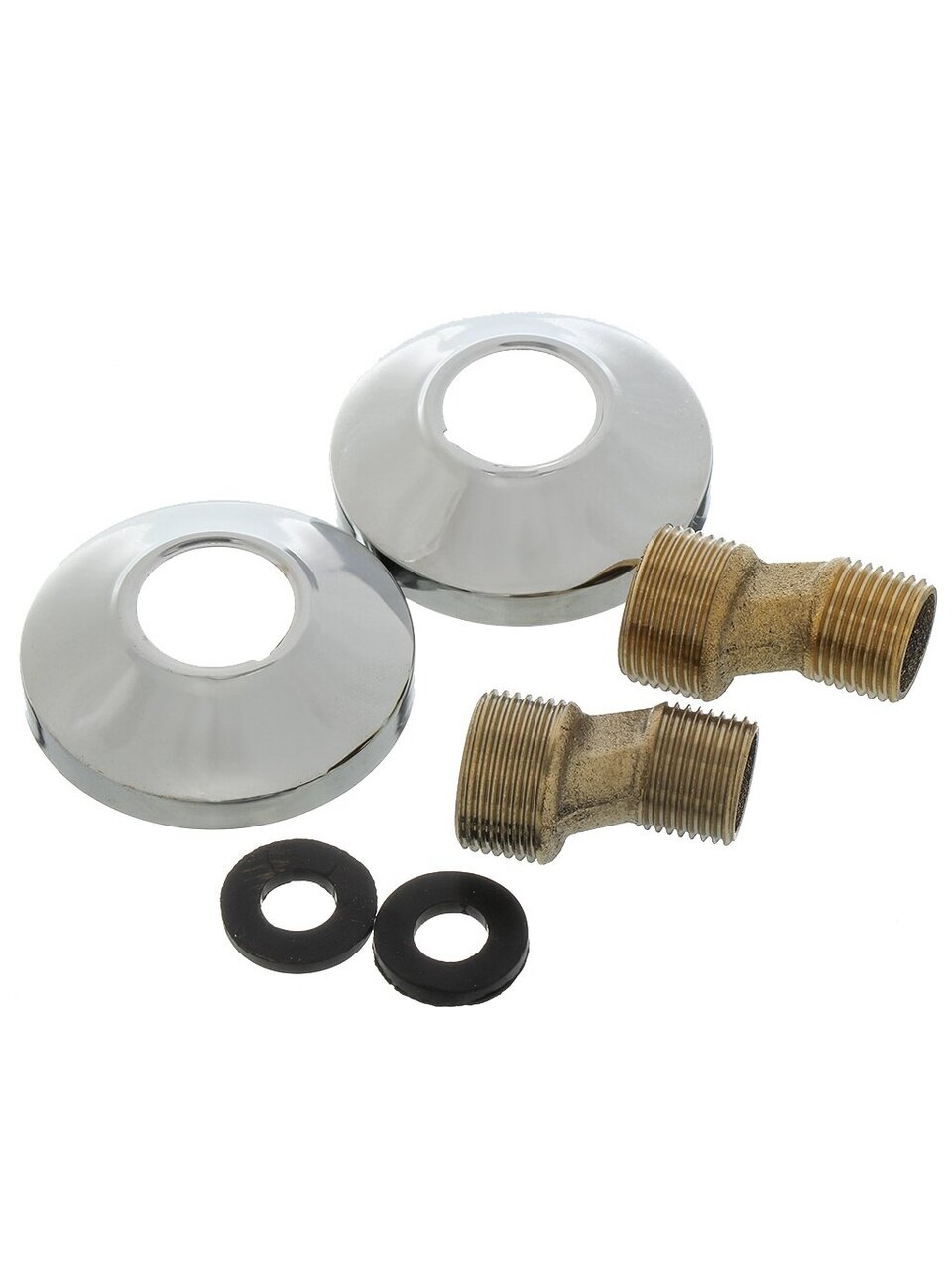 Межосевое расстояние — 150 мм, стандартная подводка 1/2", крепление на 2 отверстия. Это универсальный размер для большинства российских ванн.
