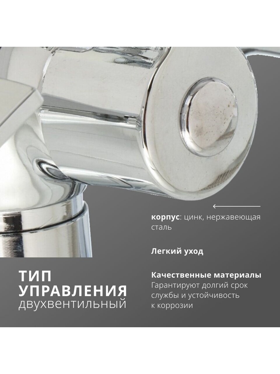 - Двойное управление с керамической кран-буксой — плавное и точное смешивание воды, долгий срок службы