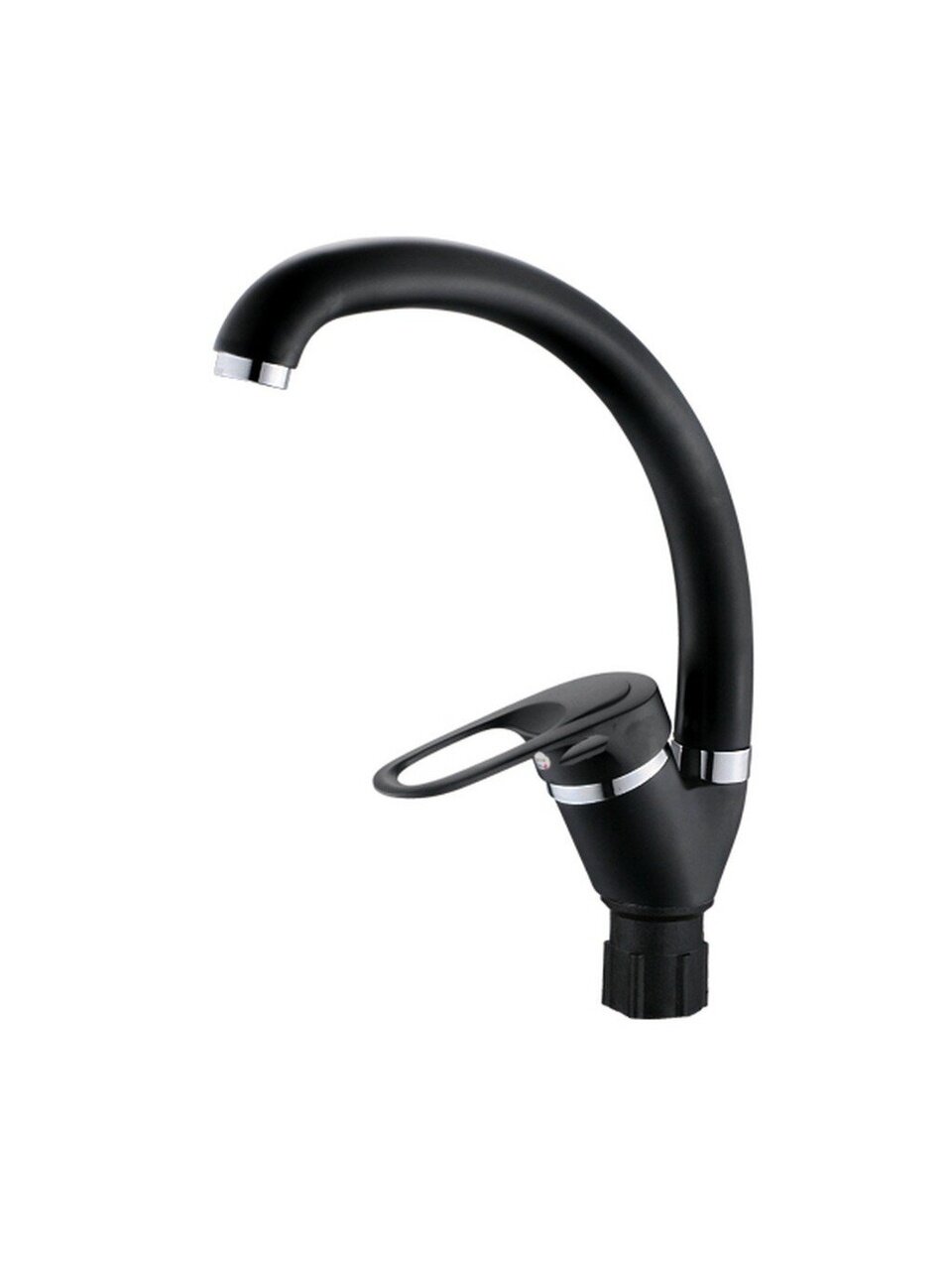 Смеситель для кухни Эверест B59-0256: стильный черный камень и хром, долговечная нержавеющая сталь, удобство поворотного излива для современных кухонь.