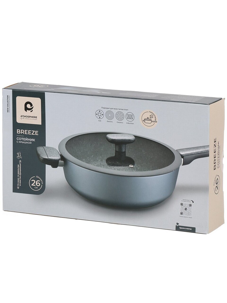 Алюминиевый сотейник с крышкой Atmosphere Breeze - идеальный выбор для тех, кто ценит удобство и функциональность на кухне. Антипригарное покрытие позволяет готовить разнообразные блюда без добавления масла, сохраняя их натуральный вкус и пользу для здоровья. Благодаря оптимальной толщине стенок и дна сотейника, тепло распределяется равномерно, что ускоряет процесс приготовления и предотвращает подгорание. Ковка алюминия придает сотейнику малый вес и прочность, делая его удобным для использования каждый день.