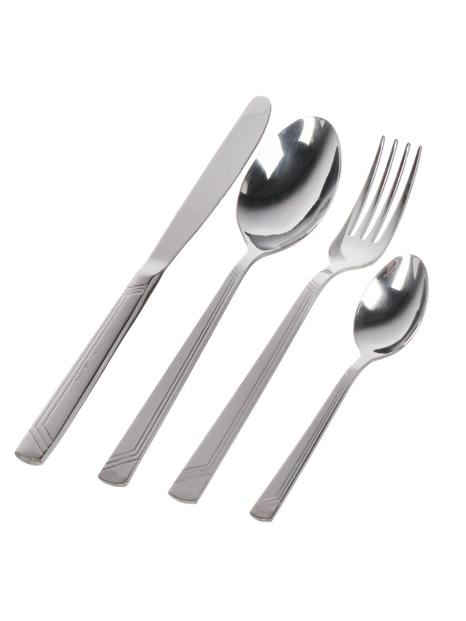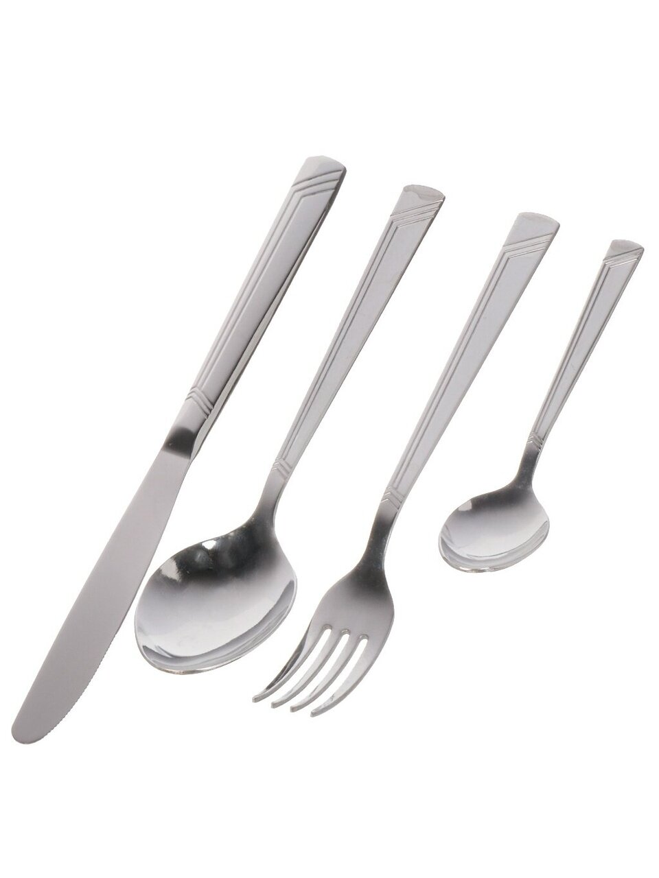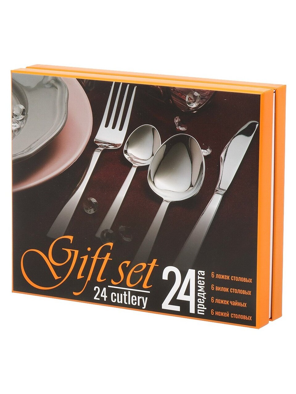 Комплект рассчитан на 6 человек и содержит 24 предмета: ложки, вилки, ножи и чайные ложки.