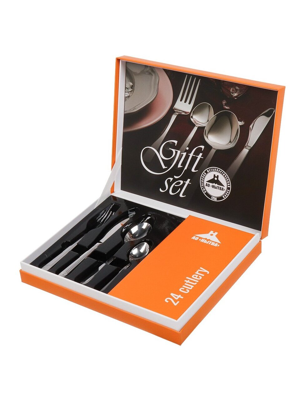 Подарочный набор столовых приборов Добросталь/Нытва «Аппетит ЭИП», 24 предмета — идеальное решение для сервировки стола на 6 персон, долговечная нержавеющая сталь и стильная упаковка для ценителей комфорта и уюта.