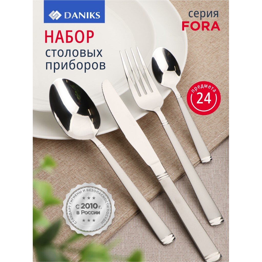 Набор столовых приборов Daniks Fora 24 предмета — стильный подарок и практичное решение для сервировки стола на 6 персон, в подарочной упаковке.