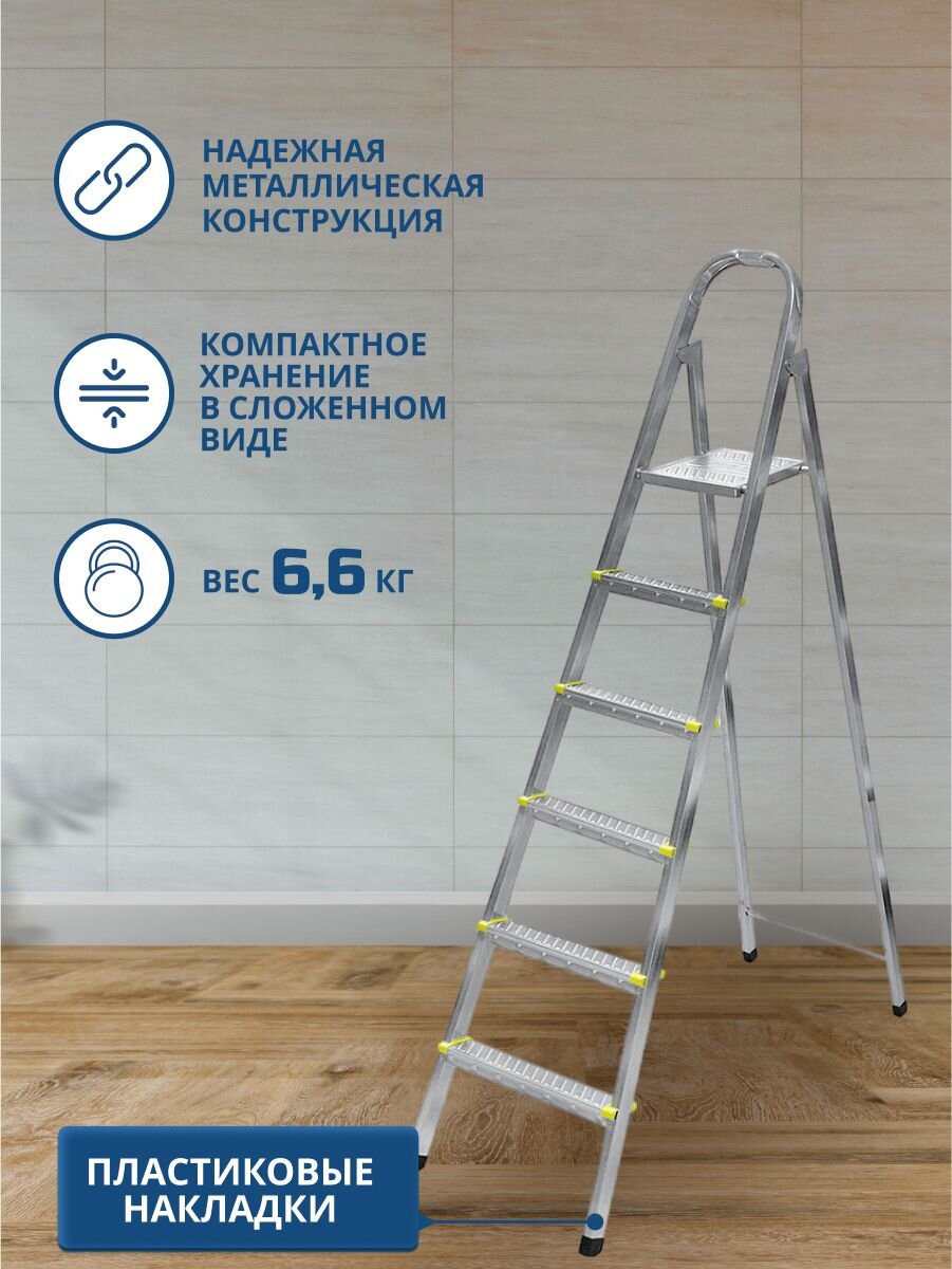 - 6 широких металлических ступеней, обеспечат удобство и безопасность подъема и спуска.