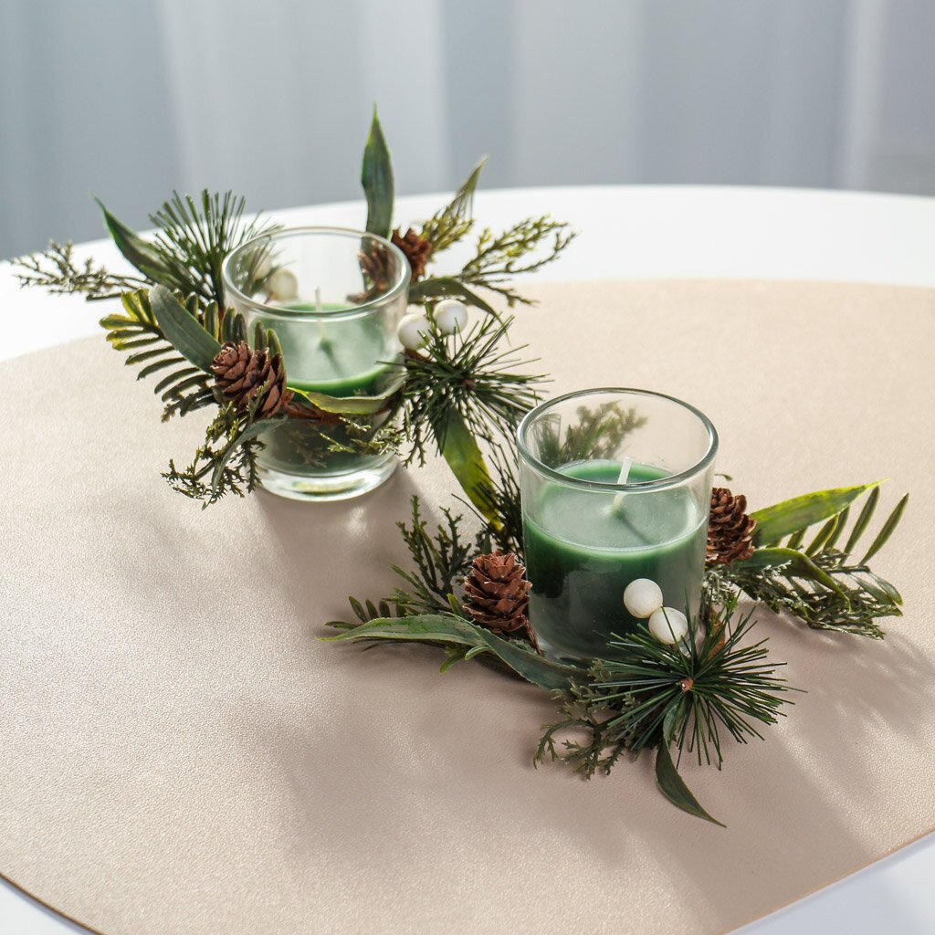 Декоративные свечи — не только элемент декора, но и способ подчеркнуть индивидуальность пространства. Благодаря универсальному зелёному оттенку, свечи легко комбинируются с различными аксессуарами и текстилем. Изделия в стеклянных стаканах безопасны в использовании и не требуют специальных подставок, что особенно удобно для ежедневного применения.