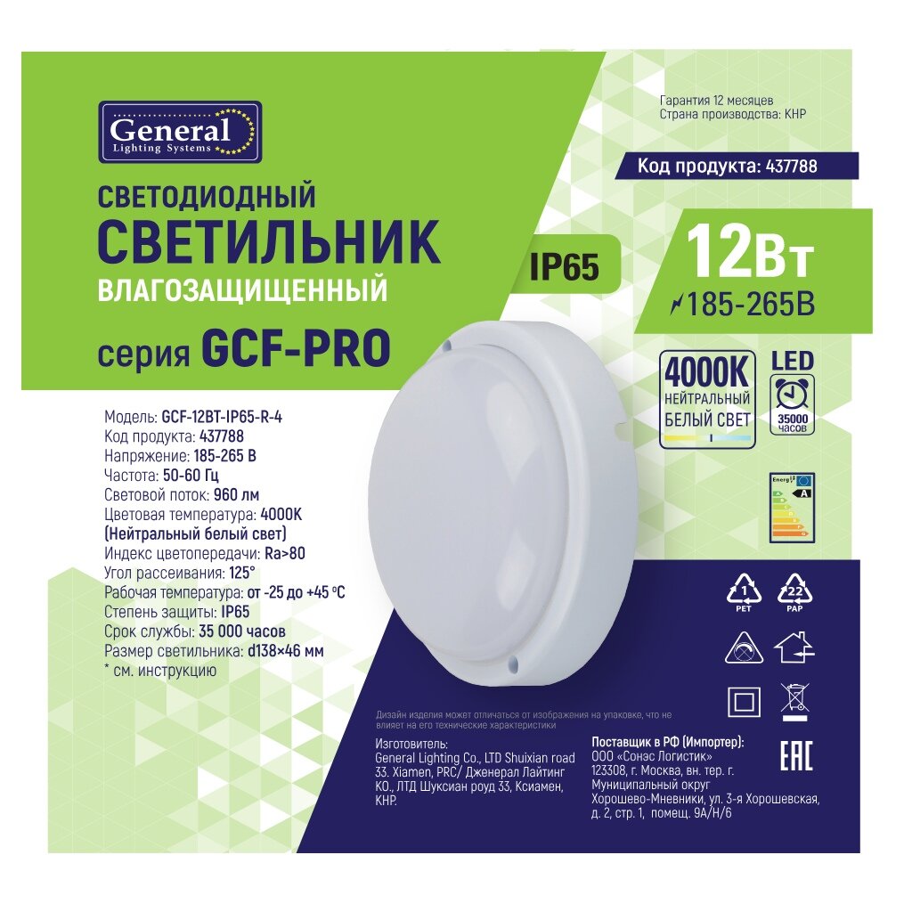 Светильник светодиодный ЖКХ GE 12Вт IP65 — оптимальное решение для освещения подъездов, дачи и производственных помещений: долговечность, влагозащита, выгодная цена.