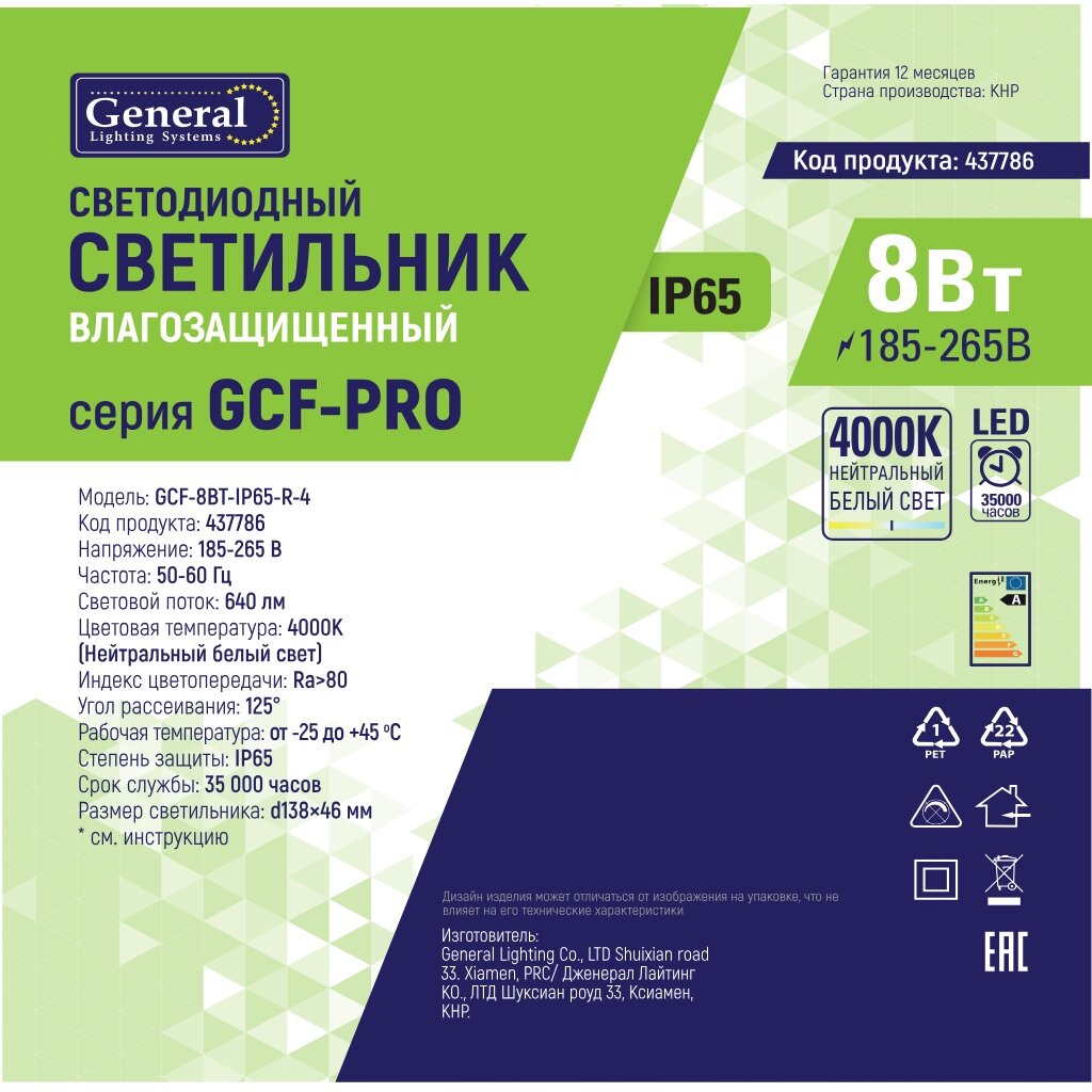 Светодиодный светильник ЖКХ GE 8 Вт IP65: надёжное освещение для дома, подъезда и производственных помещений — долговечность, влагозащита, экономия электроэнергии.