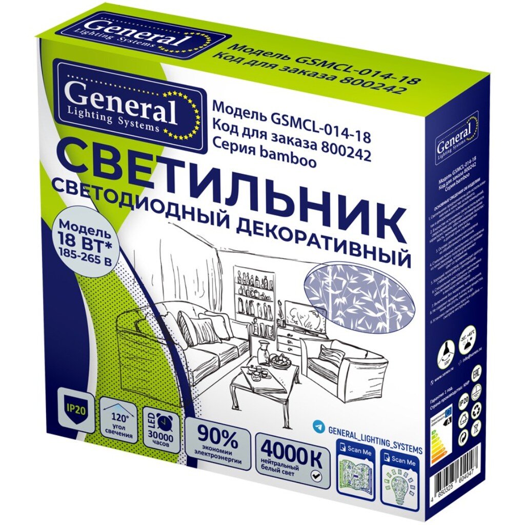 Светодиодный потолочный светильник General 18 Вт, 4000 К Bamboo — экономичное решение для стильного освещения дома и офиса. Надёжность, современный дизайн, срок службы 30 000 часов.