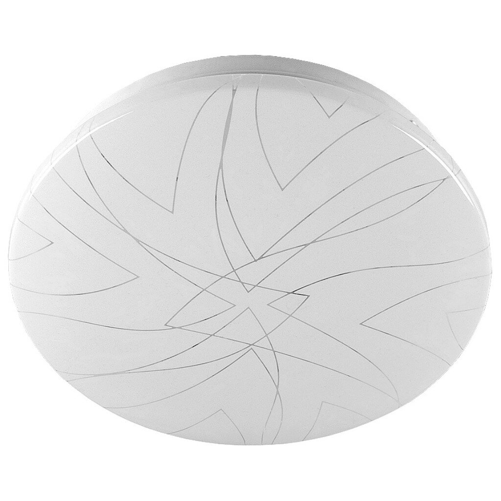 Светильник круглый, размеры: длина 25,3 см, ширина 23 см, высота 5,8 см. Корпус и плафон выполнены из пластика, монтаж — накладной.